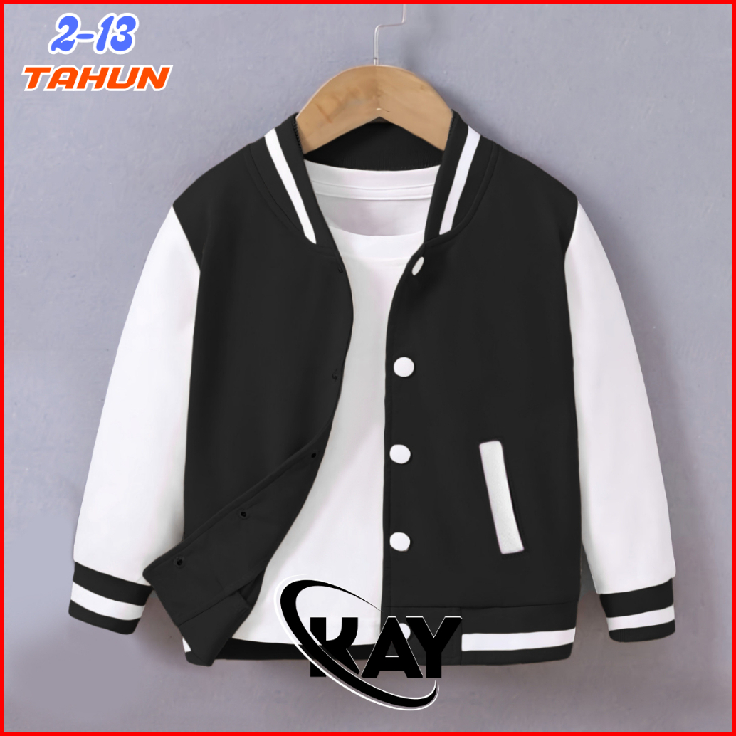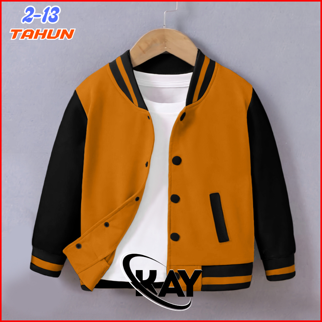 Jaket Varsity Baseball Polos Anak Laki-laki Perempuan Usia 2 3 4 5 6 7 8 9 10 11 12 13 Tahun
