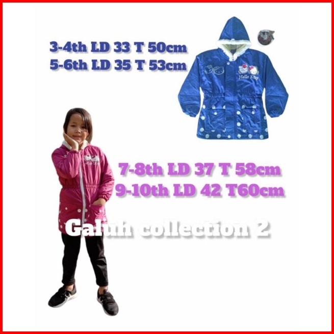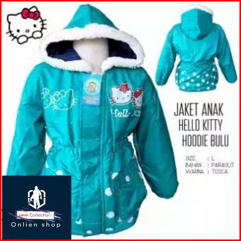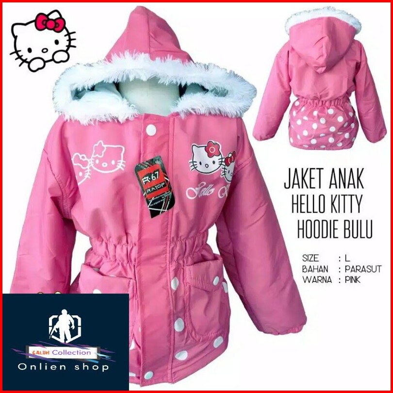 Jaket Hello Kitty 3-6 Dan 6-10tahun Anak Hoodie Bulu Bahan Parasut Jaket Anak Perempuan