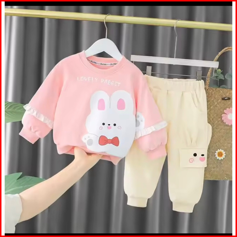 Setelan Anak Perempuan Terbaru Dan Terkini Setelan Anak Motif Lovely Bahan Babyterry Untuk 1-5 Tahun