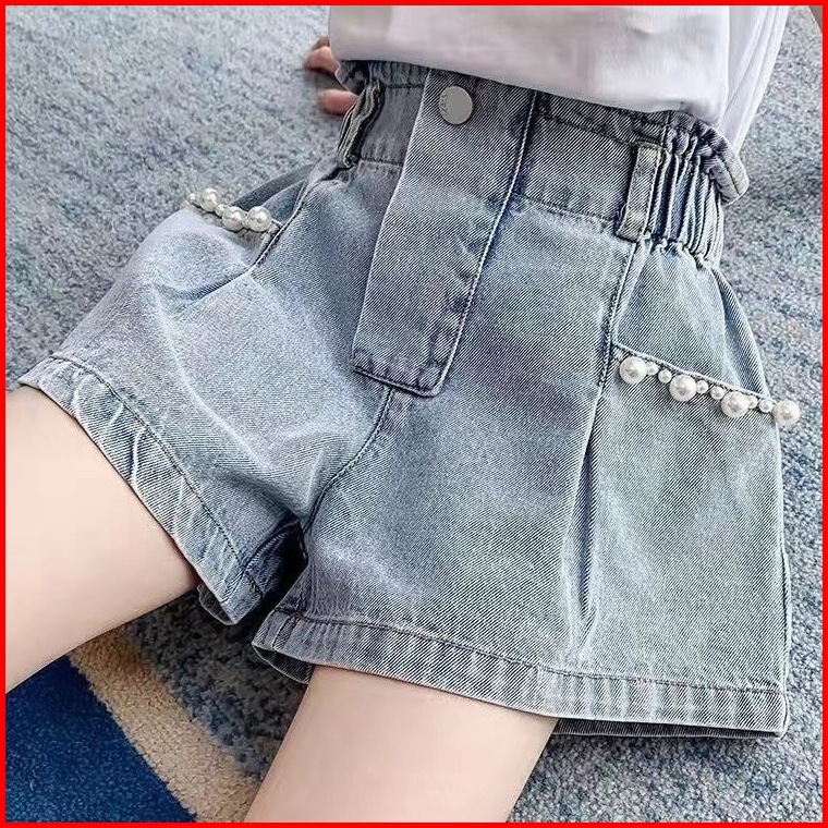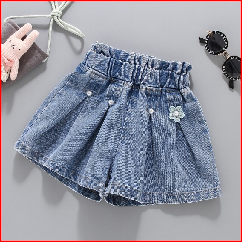 Celana Pendek Jeans Anak Perempuan Bisa Melar Dengan Aksesoris Lucu