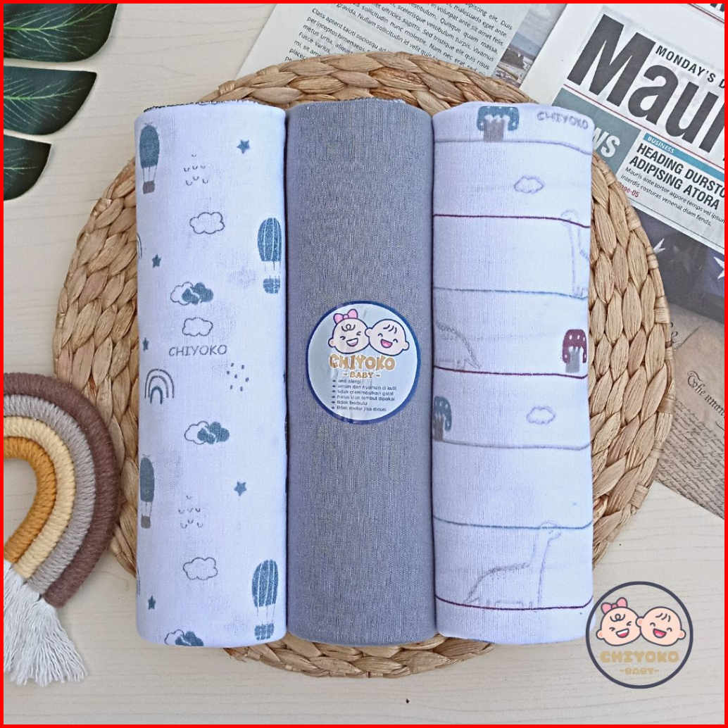 3 Pcs Bedong Bayi Baru Lahir Bahan Kaos 110 X 90 Serian Abu Chiyoko Baby Sni