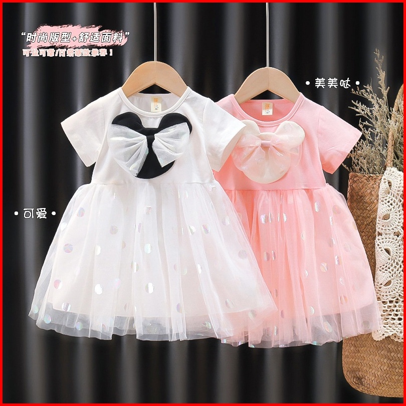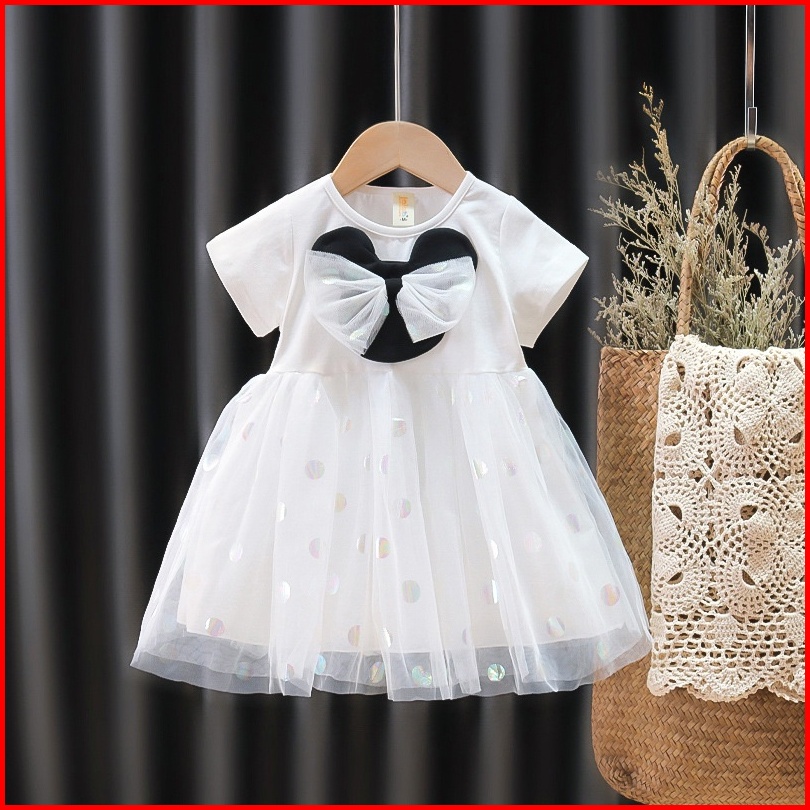 Dr87 Dress Gaun Pesta Anak Bayi Perempuan Mouse Head Pita