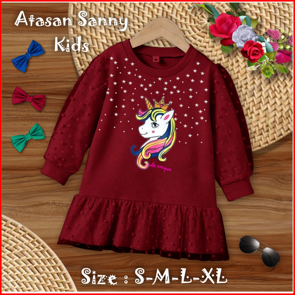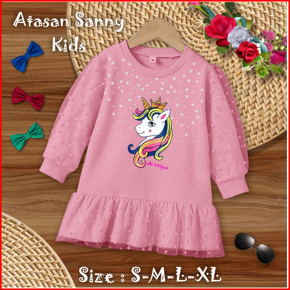 Atasan Anak Perempuan Lengan Panjang Atasan Sanny Kids 1-11 Tahun Matt Babyterry Mix Tille Onde