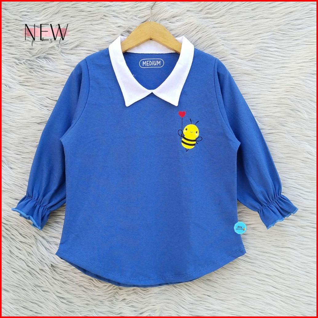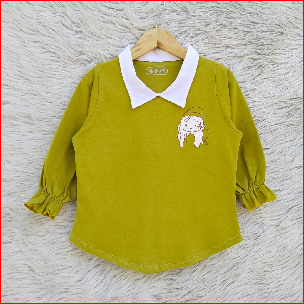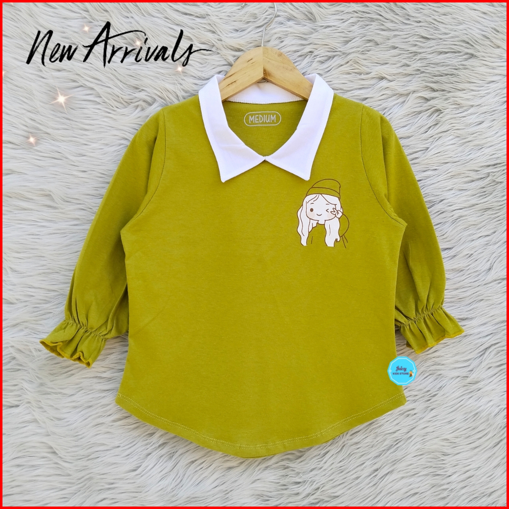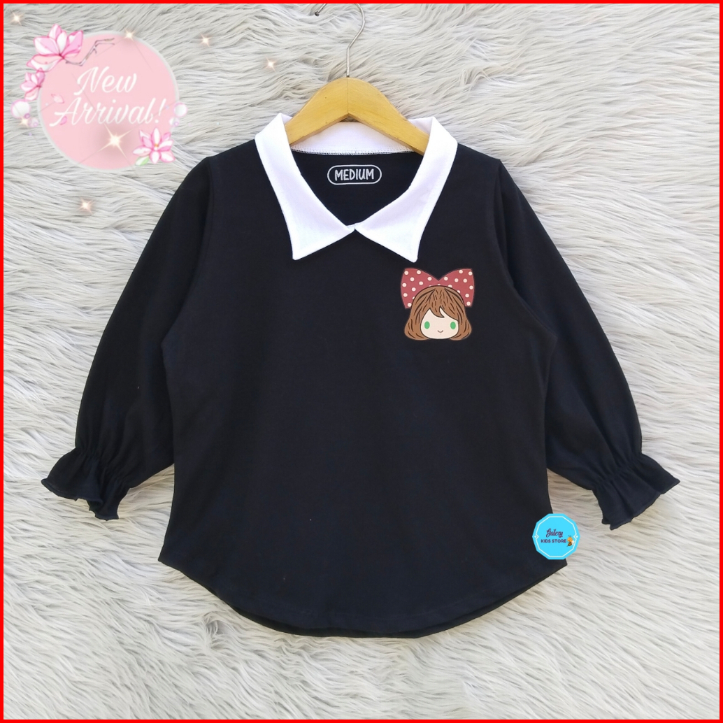 Atasan Baju Anak Perempuan Lengan Panjang Katun Combed Usia 3-12 Tahu Kaos Anak Perempuan Terbaru