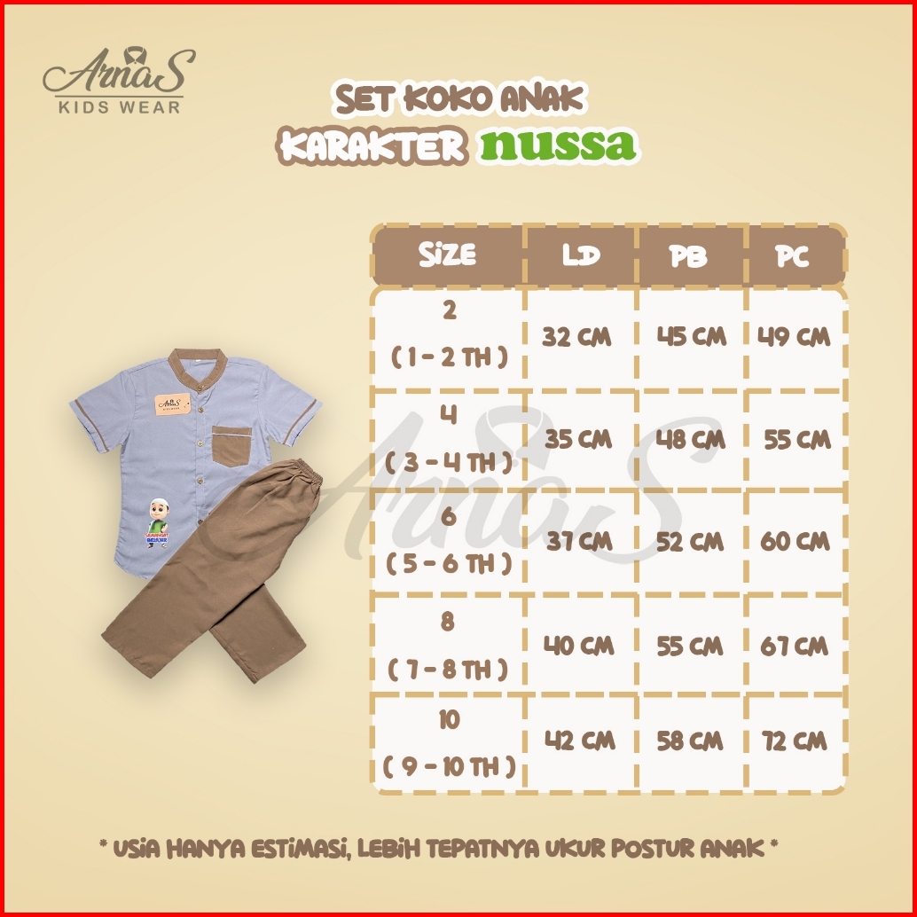 Arnas Setelan Koko Anak Nussa Usia 1-10 Tahun Terbaru One Set Koko Anak Karakter Terbaru Katun