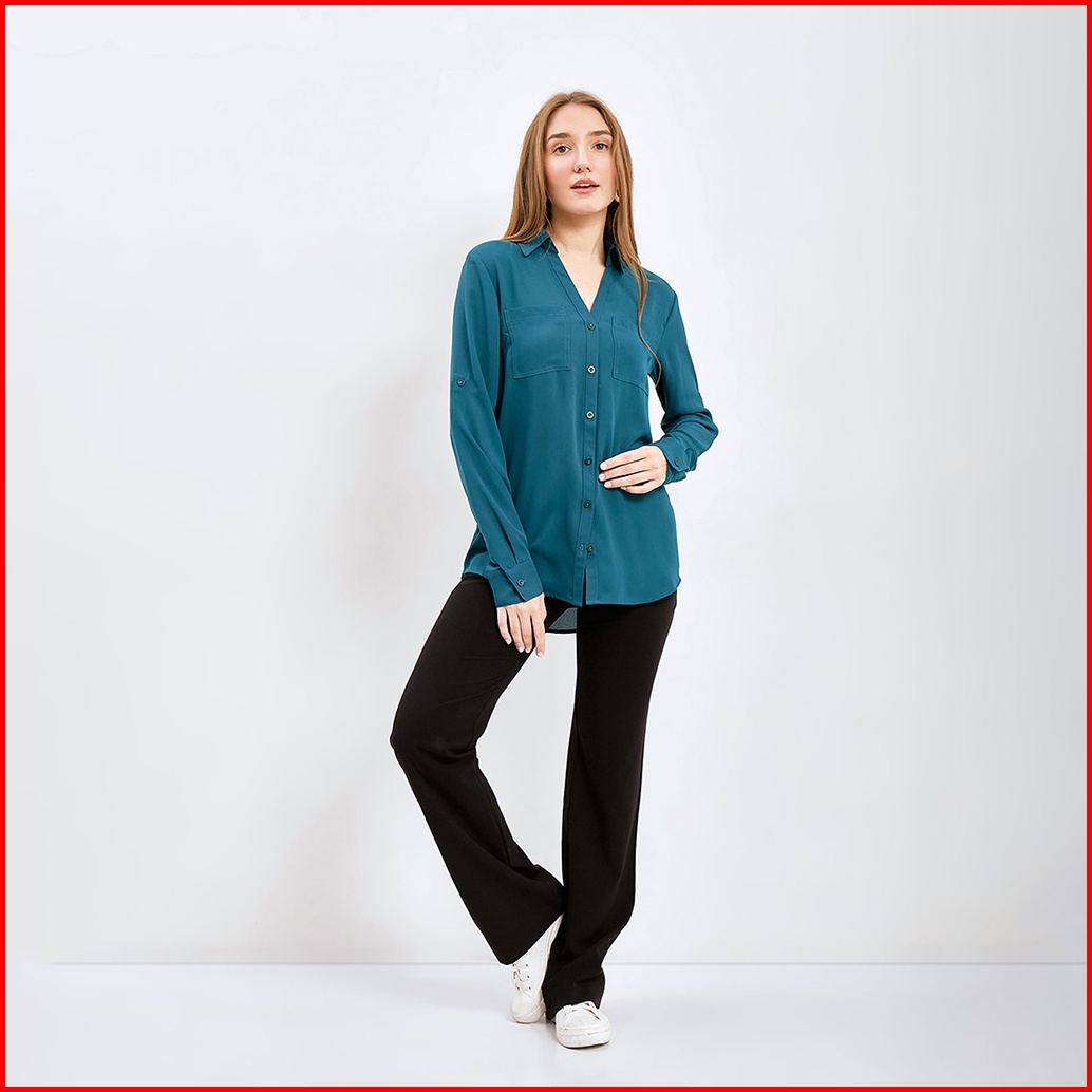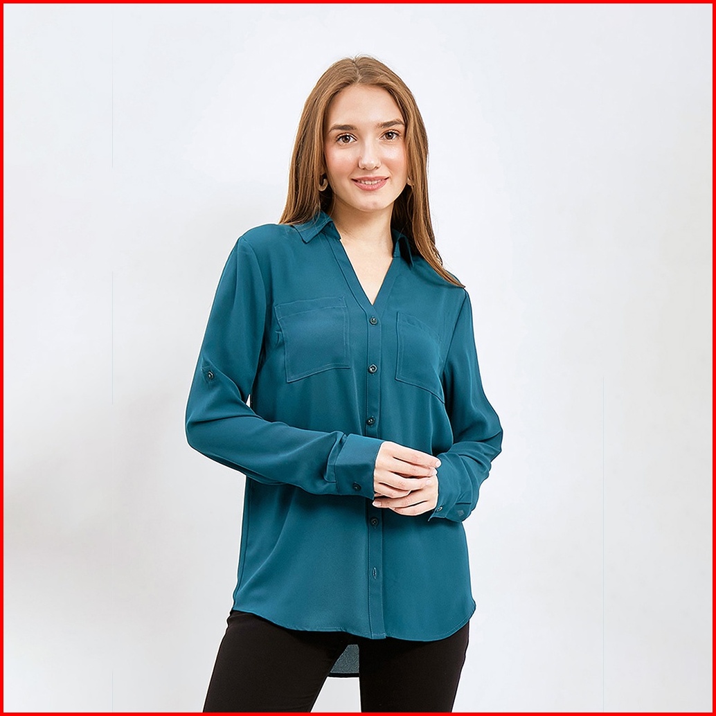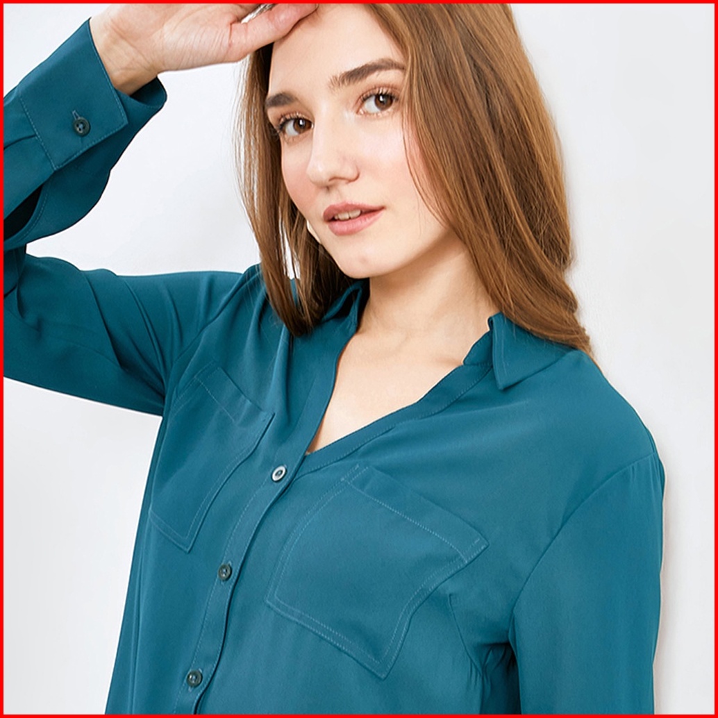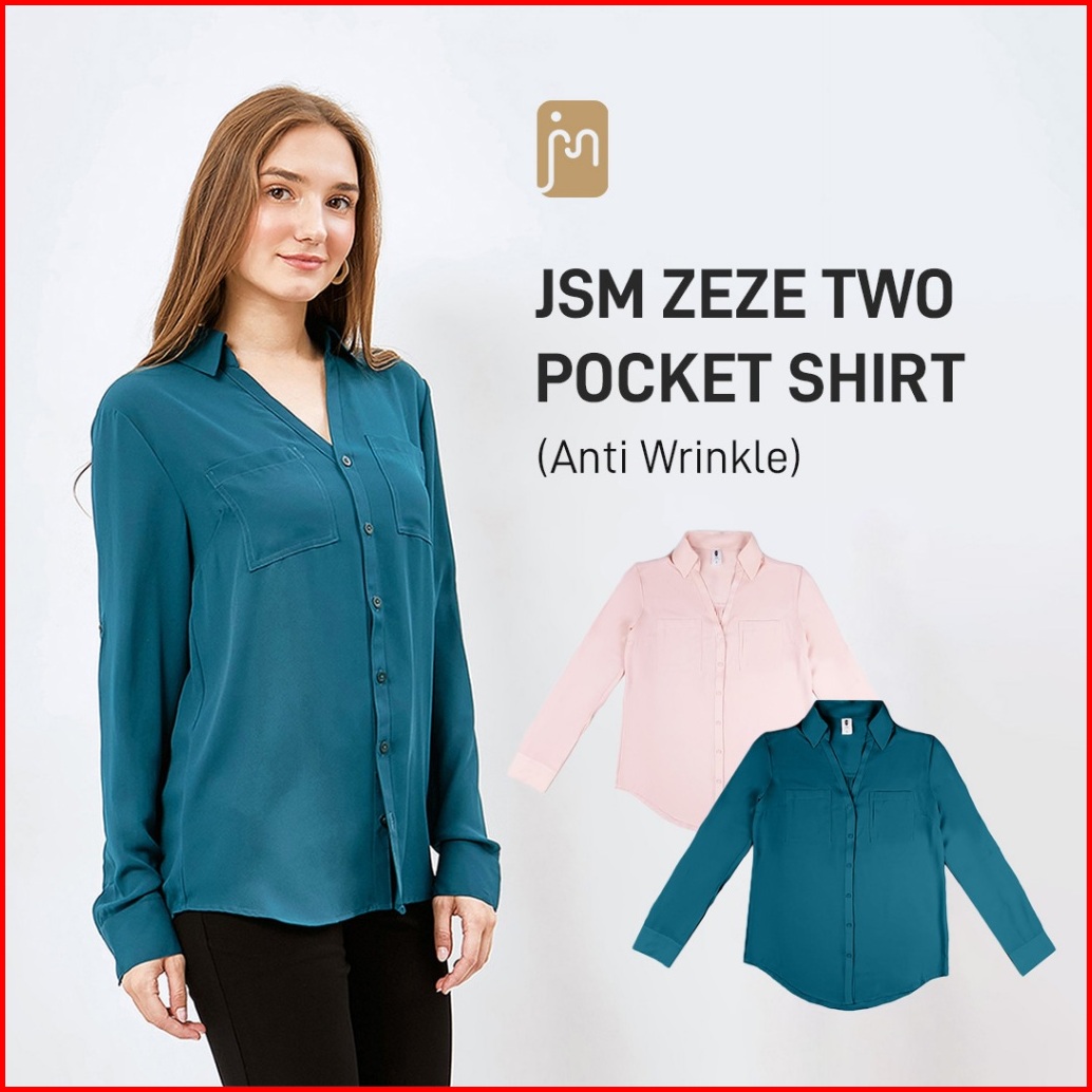 Jsm Atasan Kemeja Wanita - Lengan Panjang Zeze Shirt Two Pocket