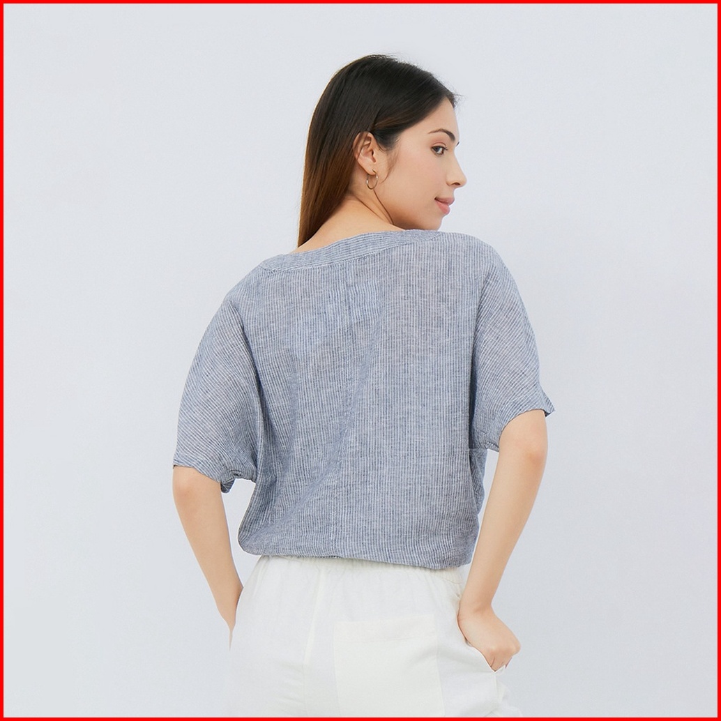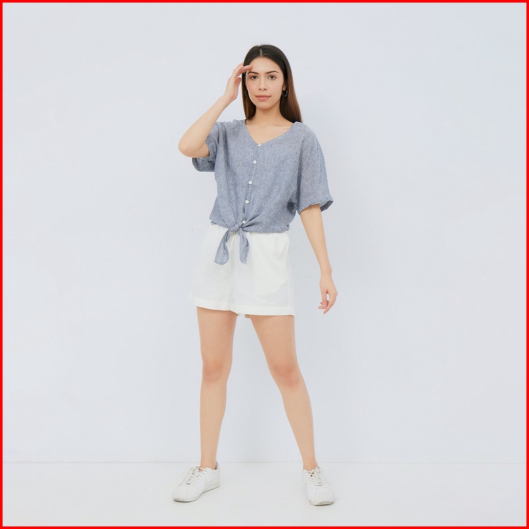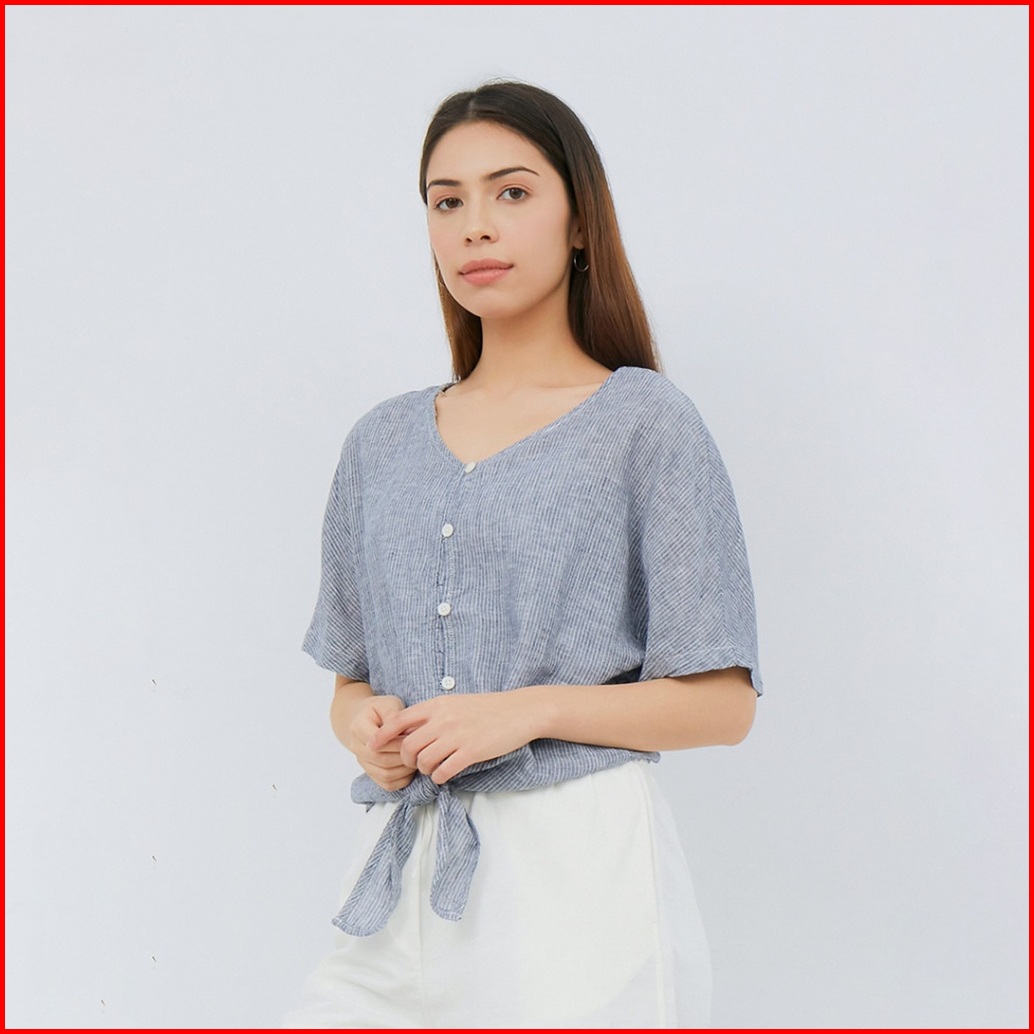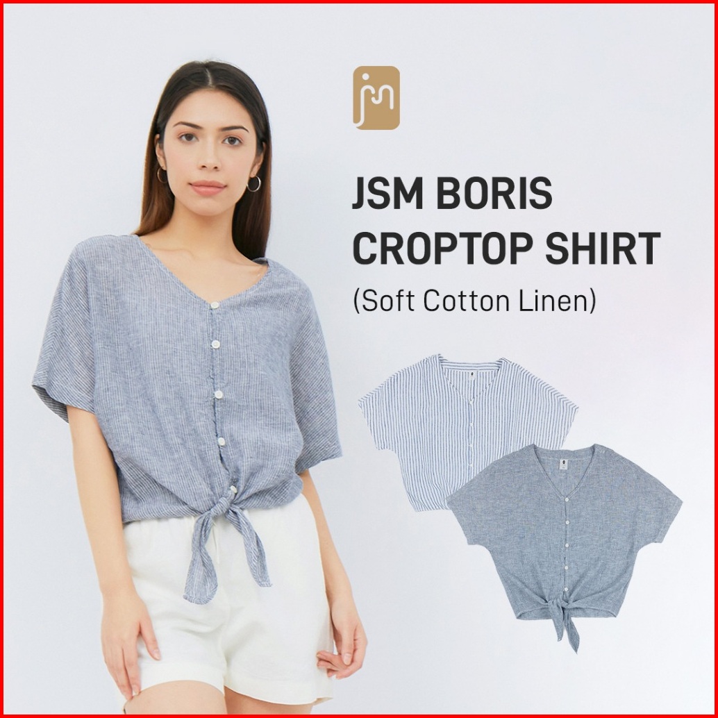 Jsm Atasan Kemeja Wanita - Lengan Pendek Crop Top Boris Shirt Katun Linen