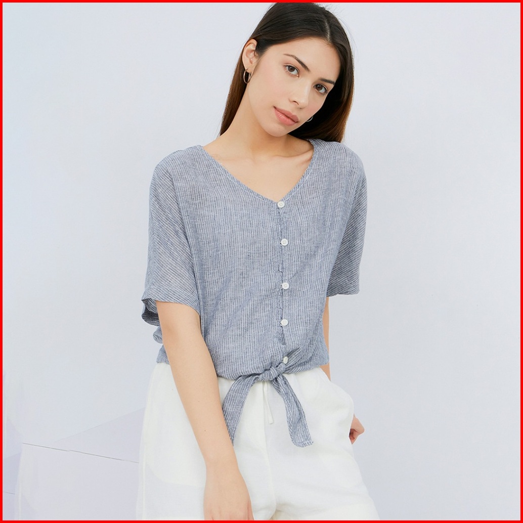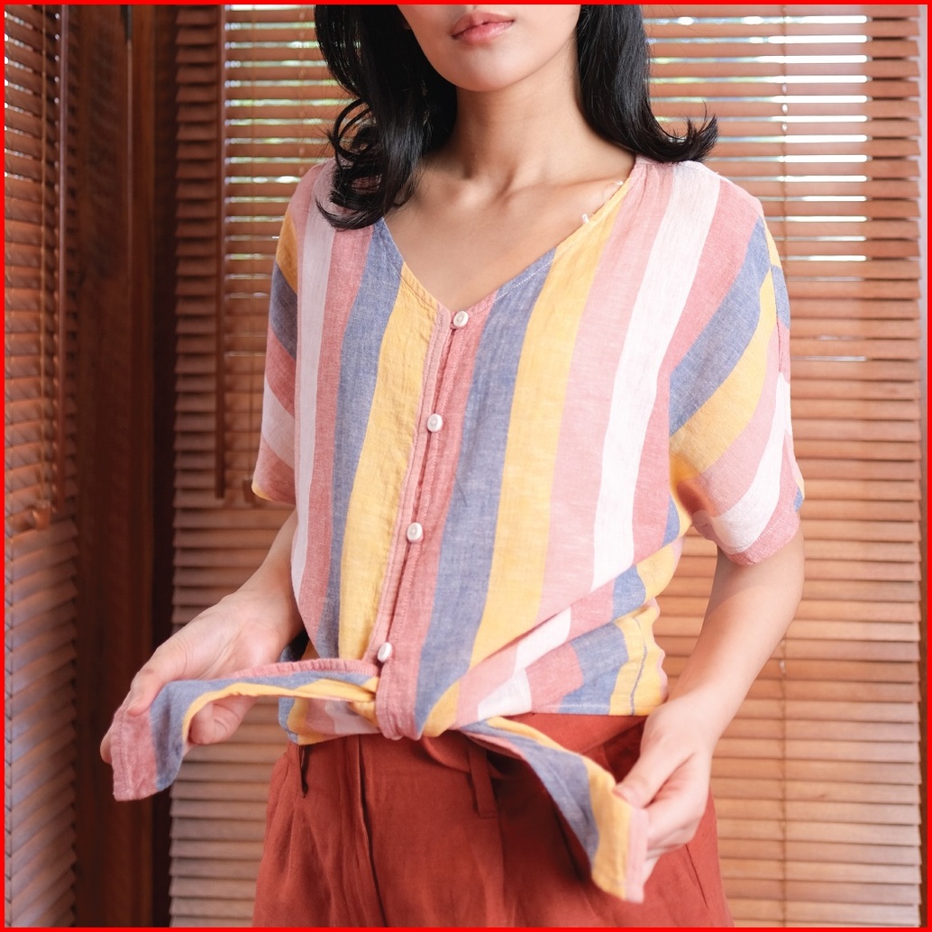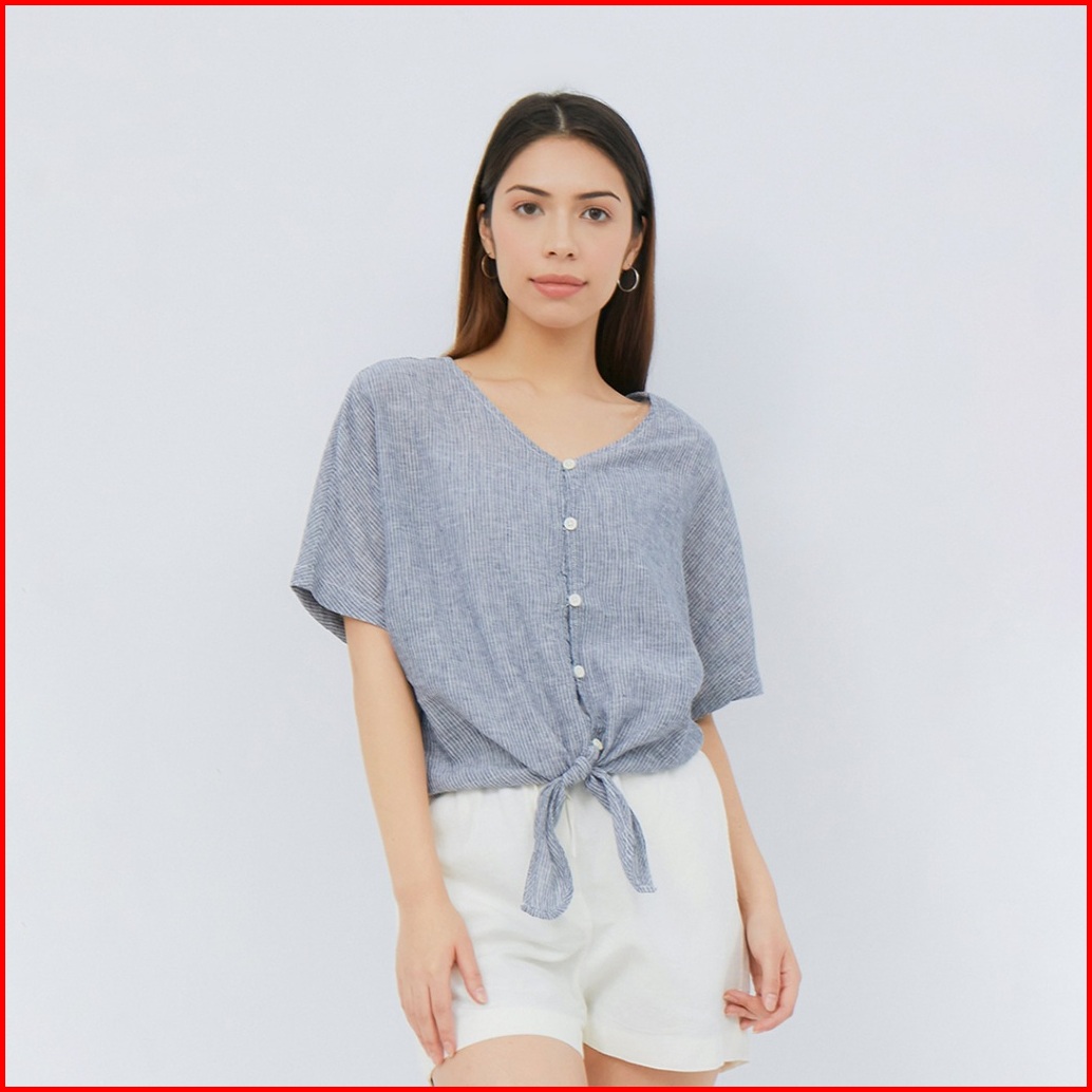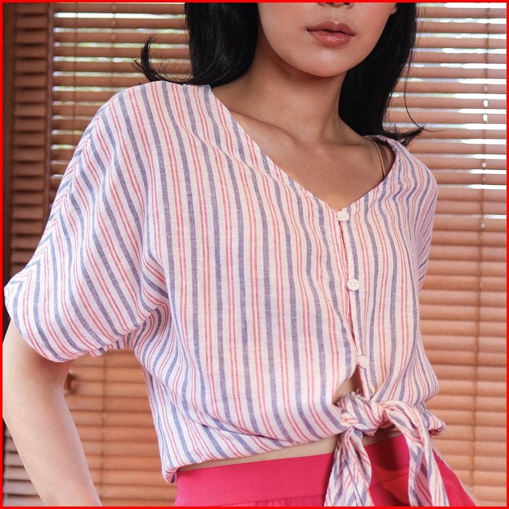 Jsm Atasan Kemeja Wanita - Lengan Pendek Crop Top Boris Shirt Katun Linen