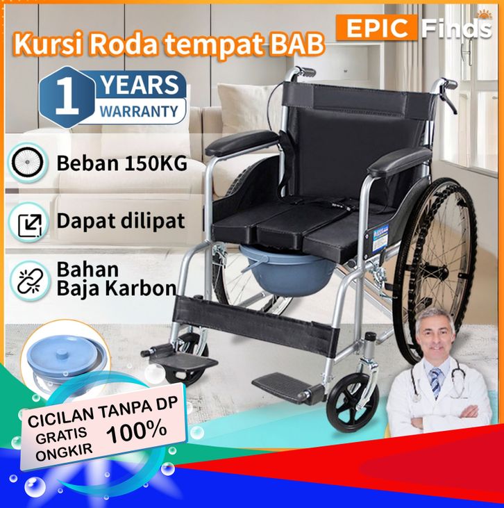 24 lnci kursi roda toilet-Kursi Roda Lipat-Alluminium Bisa Dilipat-Kursi Roda Medis