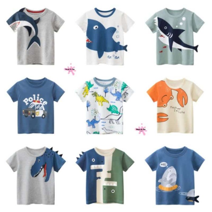 KAOS ANAK LAKI-LAKI /ATASAN ANAK LAKI-LAKI TERBARU 2023 PREMIUM IMPORT - BLUE SHARK, 130 (5-6TAHUN)