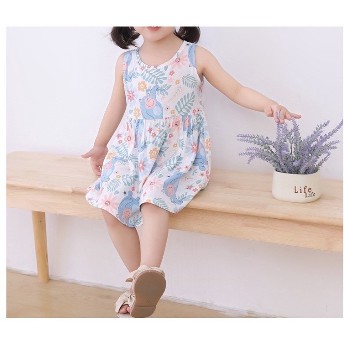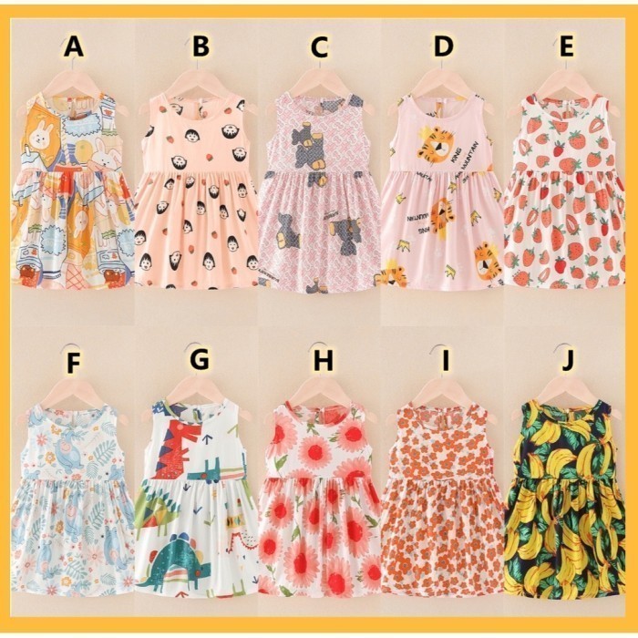 DRESS ANAK PEREMPUAN IMPORT BAHAN KATUN BERMOTIF - H, 90