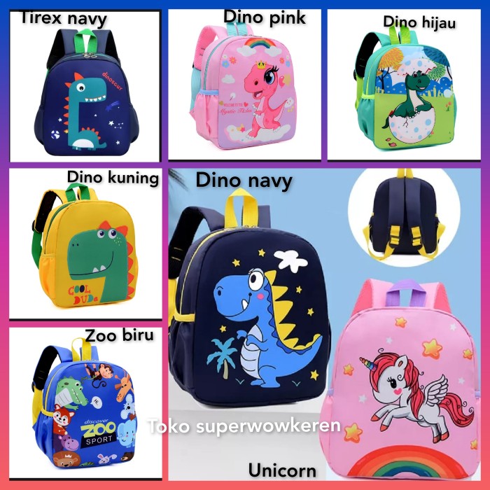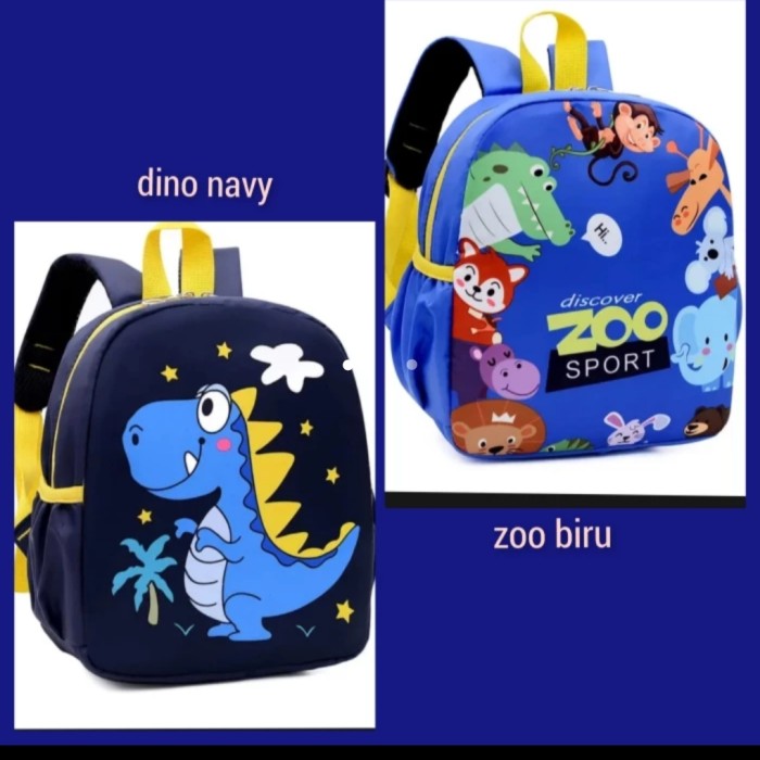 TAS RANSEL ANAK TK PAUD LAKI LAKI PEREMPUAN KARAKTER LUCU MURAH - ZOO BIRU