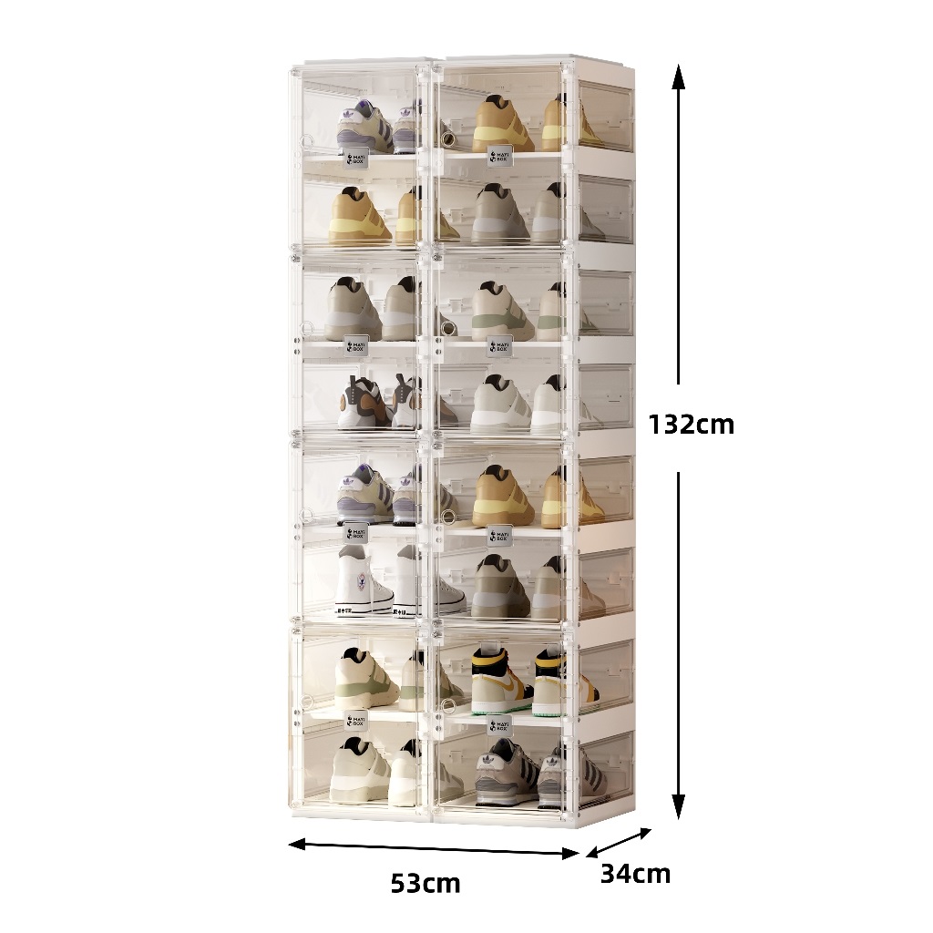 ANTBOX Rak Sepatu Susun Clear 8-20 Pasang Kotak Sepatu Lipat Aesthetic Anti Debu Pintu Magnet