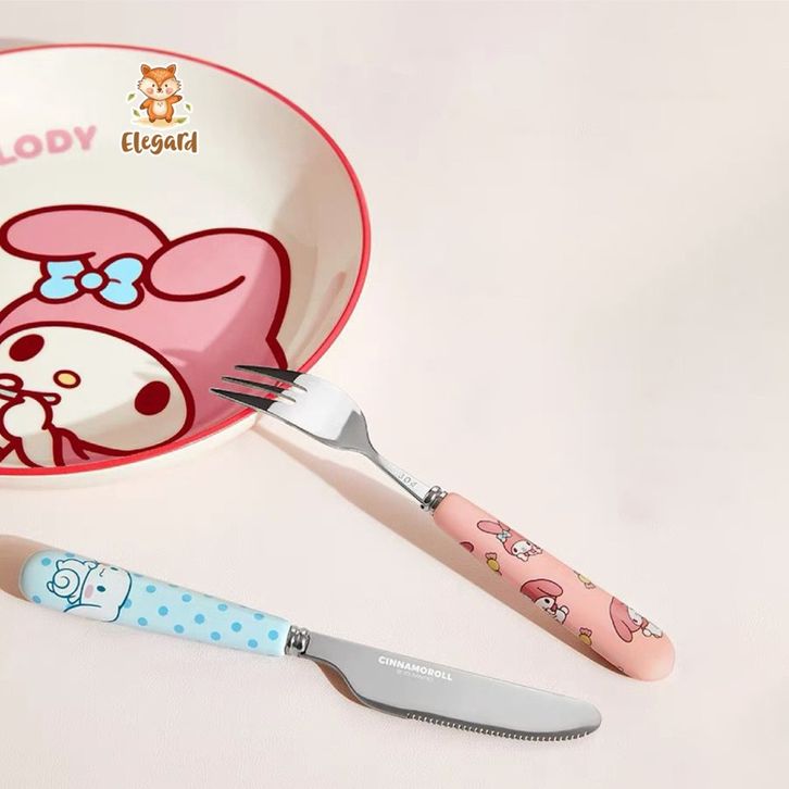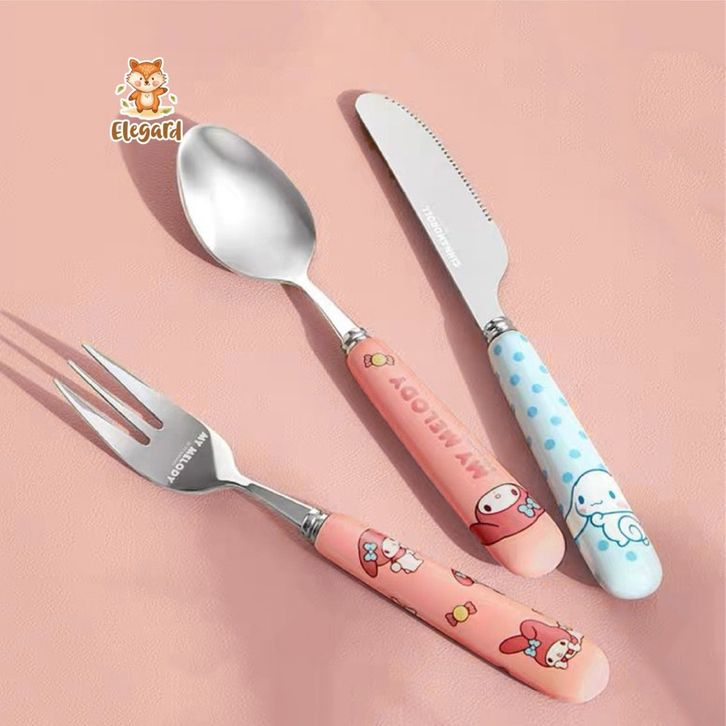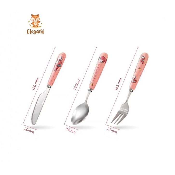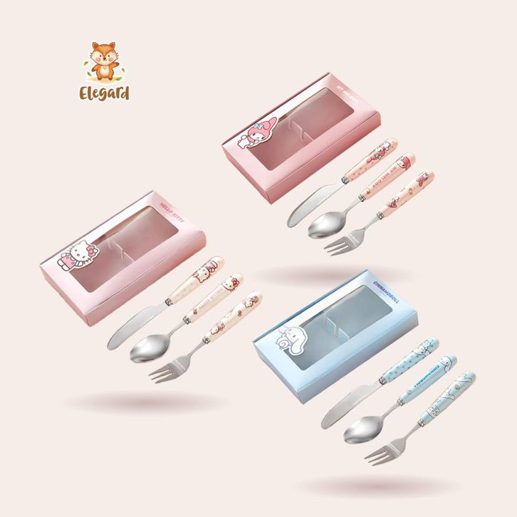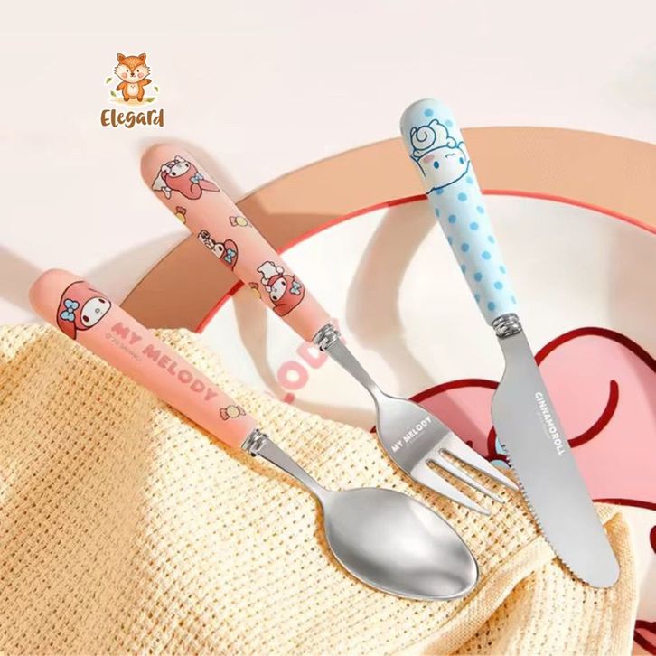 SANRIO TODDLER CUTLERY SET / sendok garpu pisau set sanrio/ sendok makan anak besi motif cinnamoroll HK melody/ sanrio