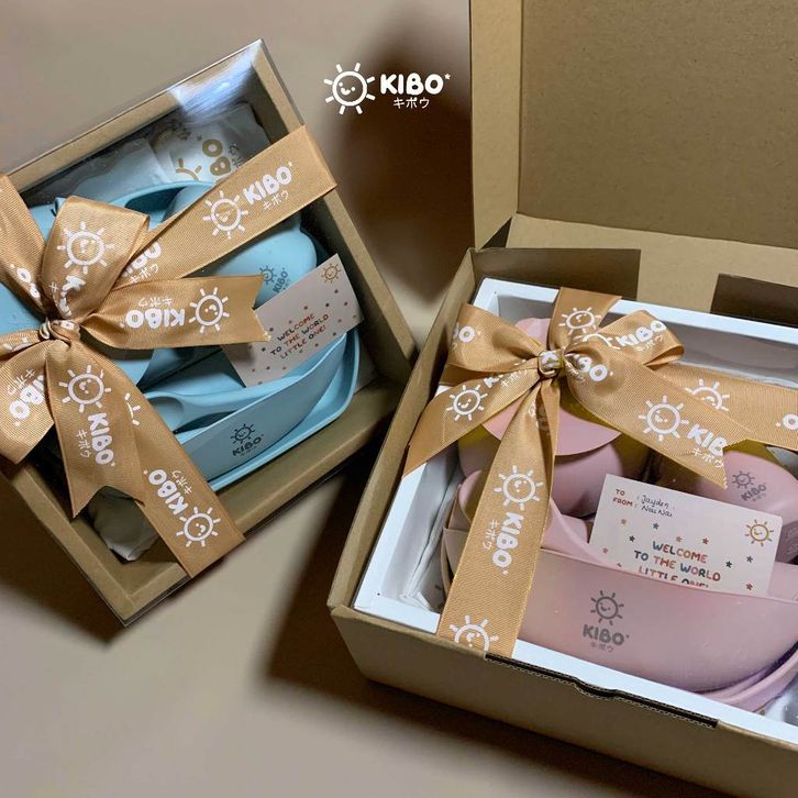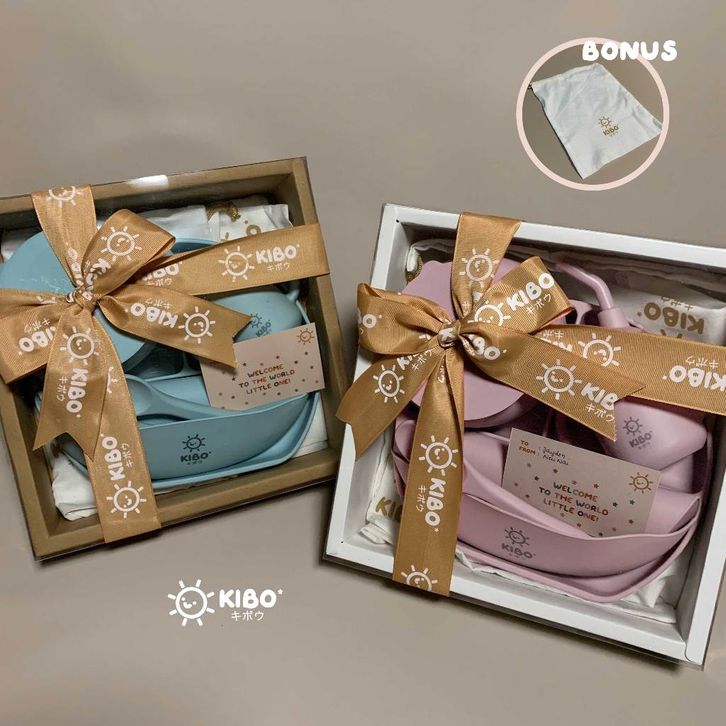 KIBO Silicone Feeding Set FREE POUCH | Perlengkapan Alat Makan Bayi dan Anak | Hampers Bayi