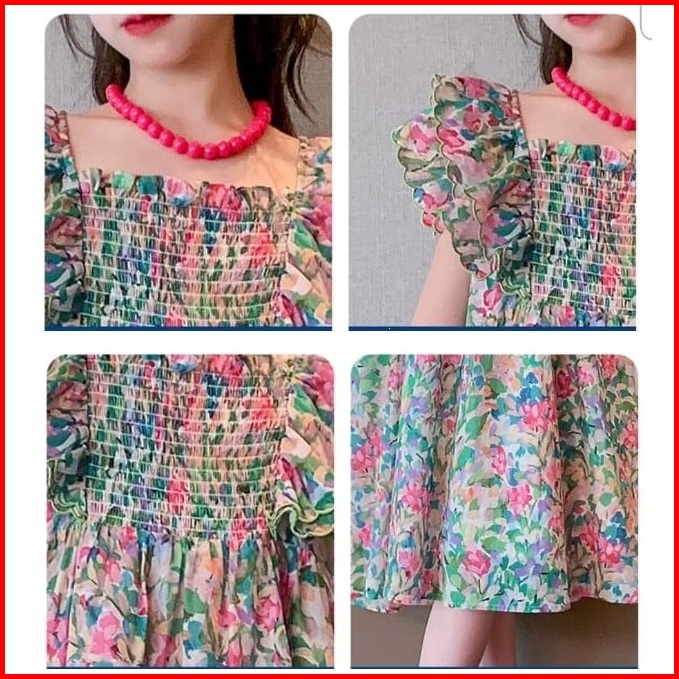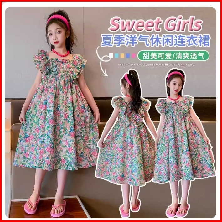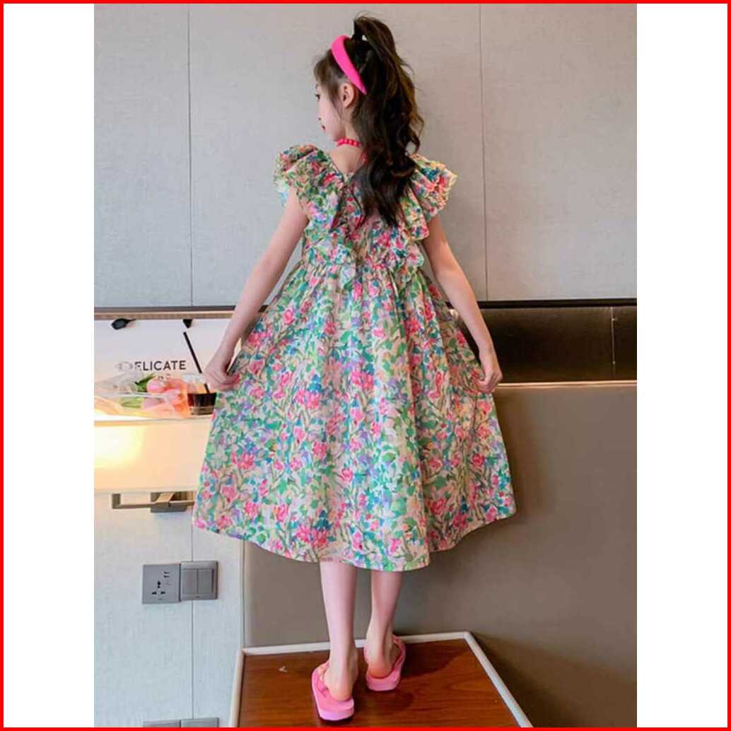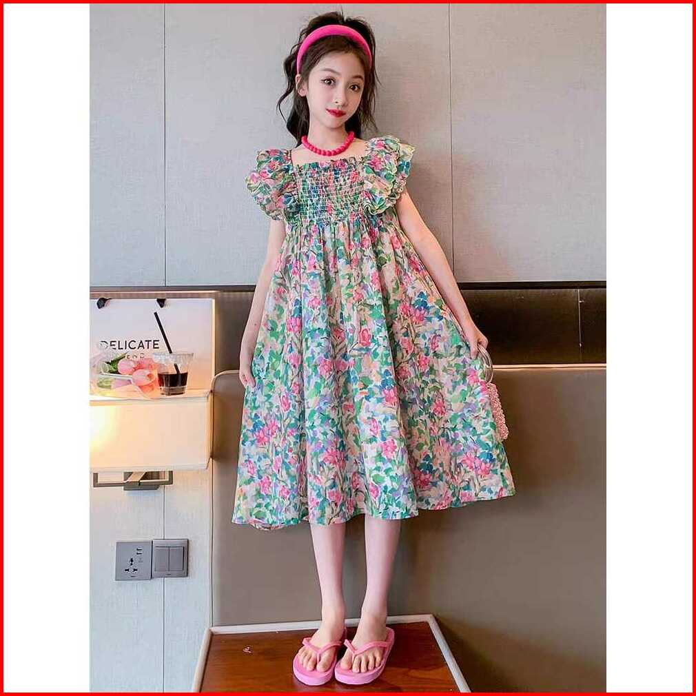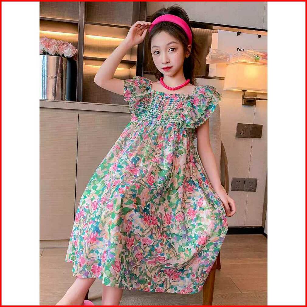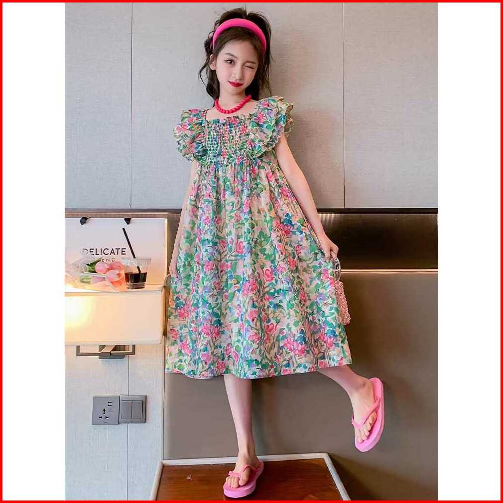 Dr39 Dress Anak Perempuan Besar Tanggung Remaja Katun Bunga2 Model Lengan Ruffle