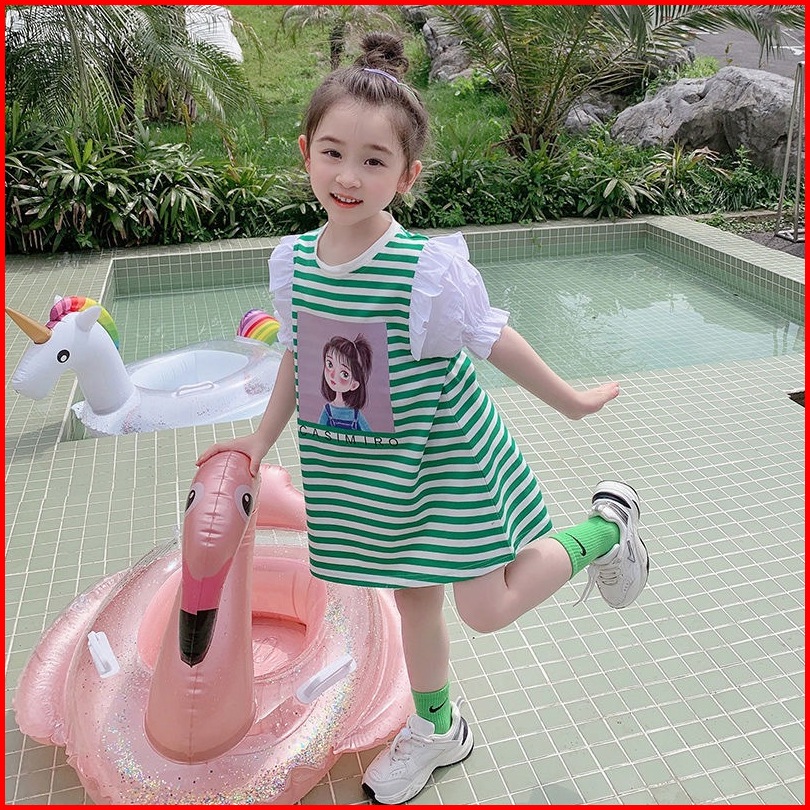 Princess Kesli 2-9 Tahun Dress Casimiro Salur Anak Perempuan Santai T-shirt Anak Kaos Anak Korea