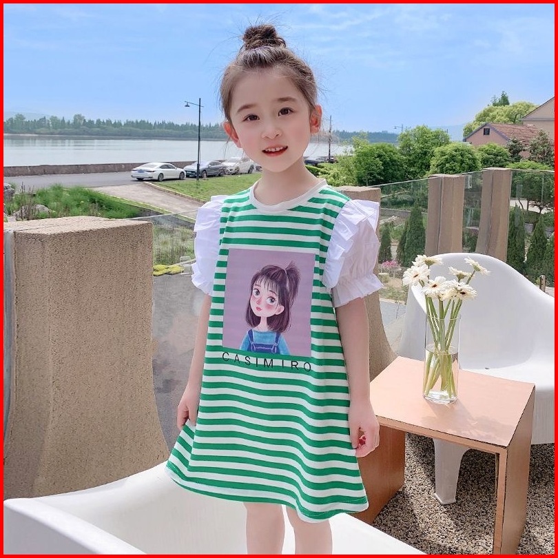Princess Kesli 2-9 Tahun Dress Casimiro Salur Baru Panjang Sedang Gaun Anak Perempuan Bergaris