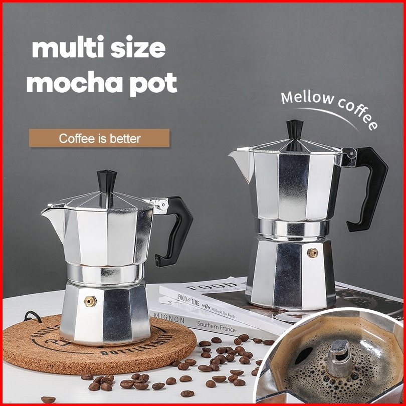 Moka Pot 300ml Espresso Maker Aluminium 2 3 6 Cups Teko Stovetop Filter Pembuat Kopi Espresso