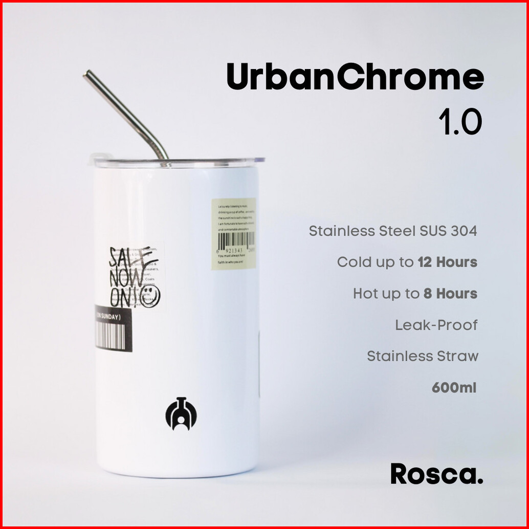 Either.id X Rosca. - Urbanchrome 1.0 Tumbler Stainless Botol Minum Aesthetic 600ml Dengan Sedotan