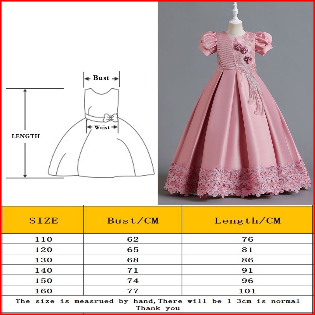 3-10thn Long Dress Pesta Anak Perempuan Festive Party Dress Anak Perempuan