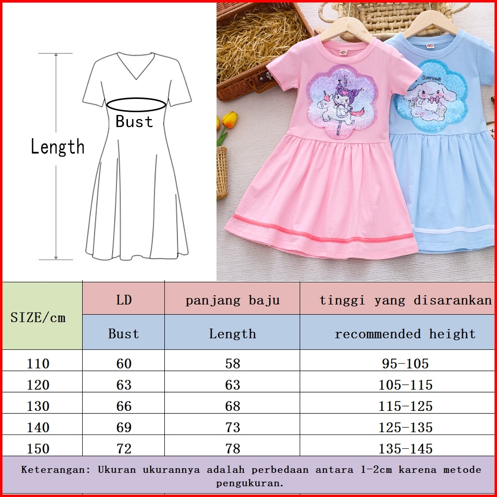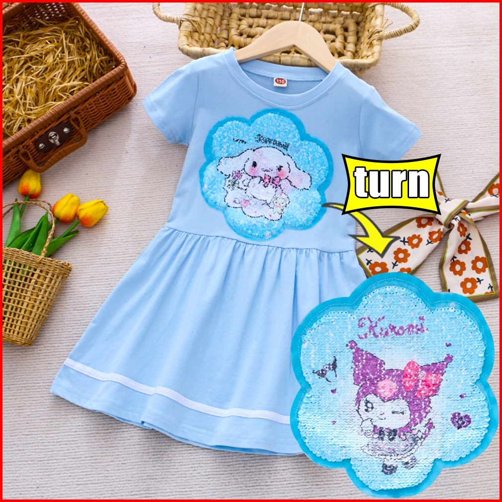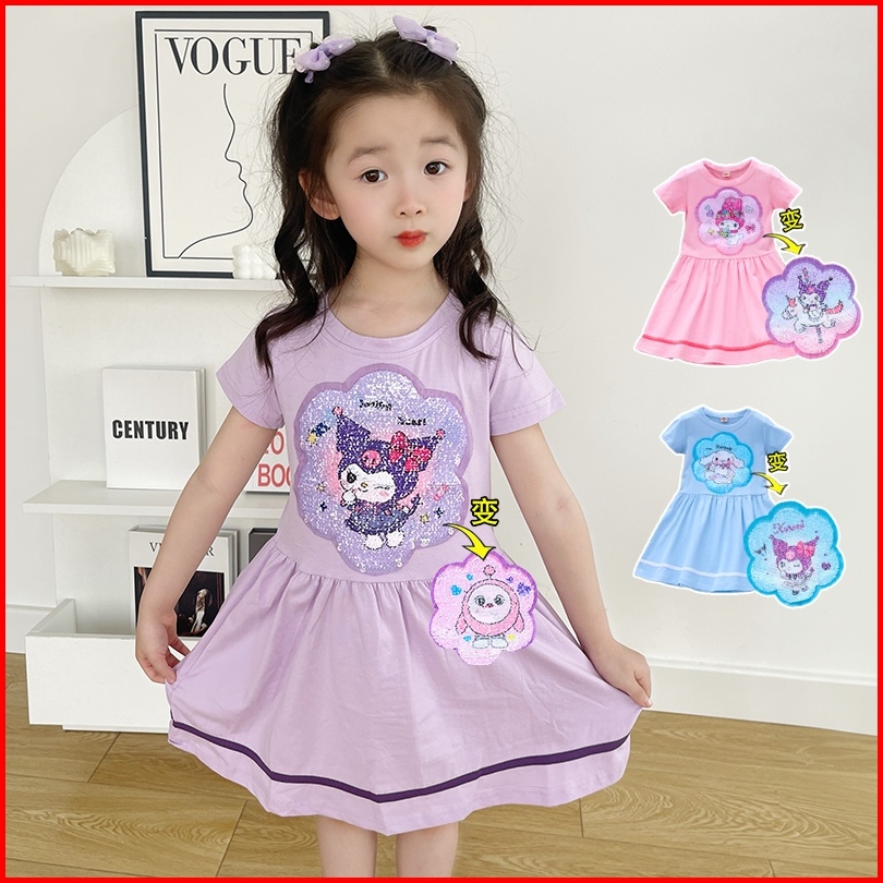 3-9yrs Kuromi Ungu Dress Anak Perempuan My Melody Gadis Lengan Pendek Baju