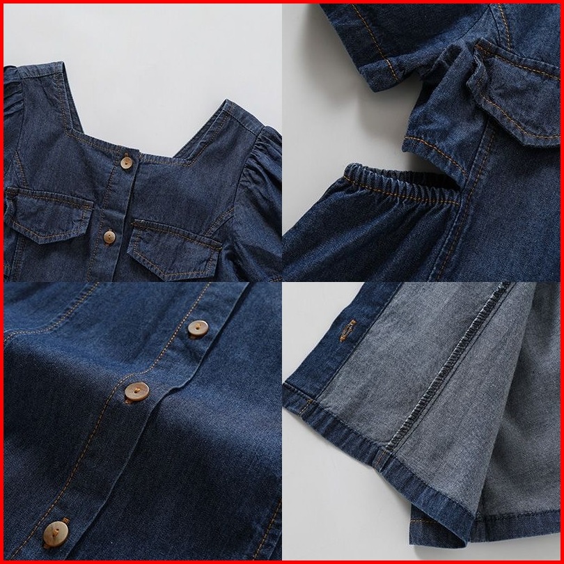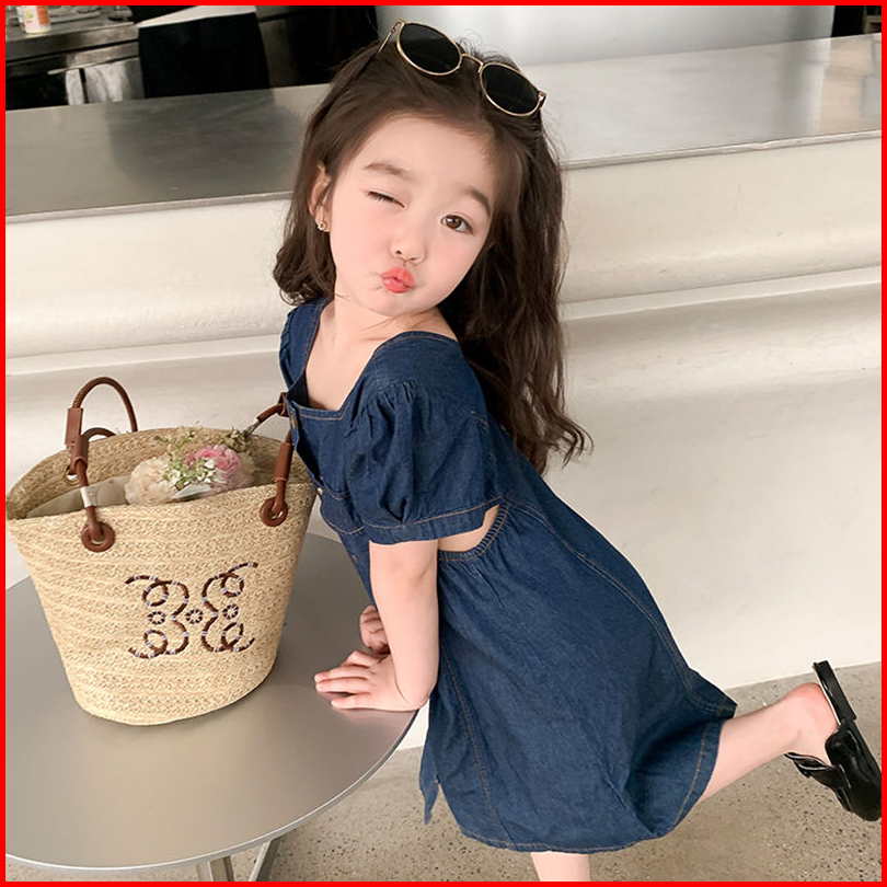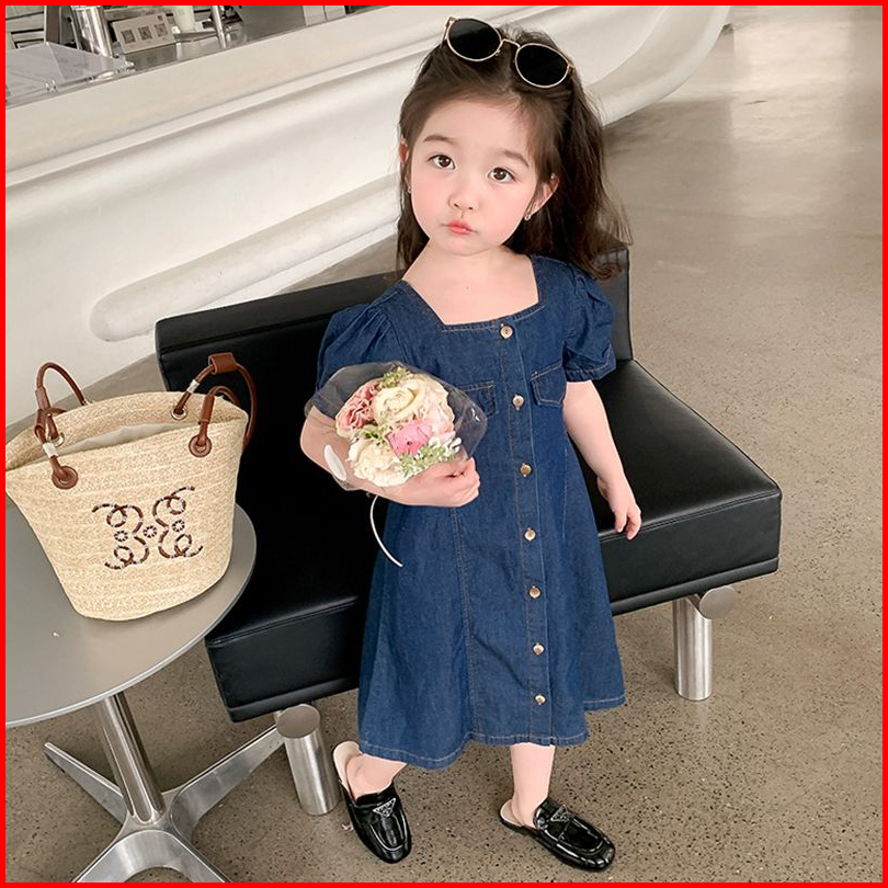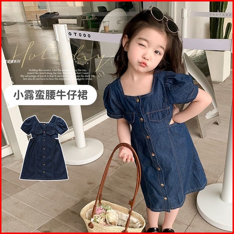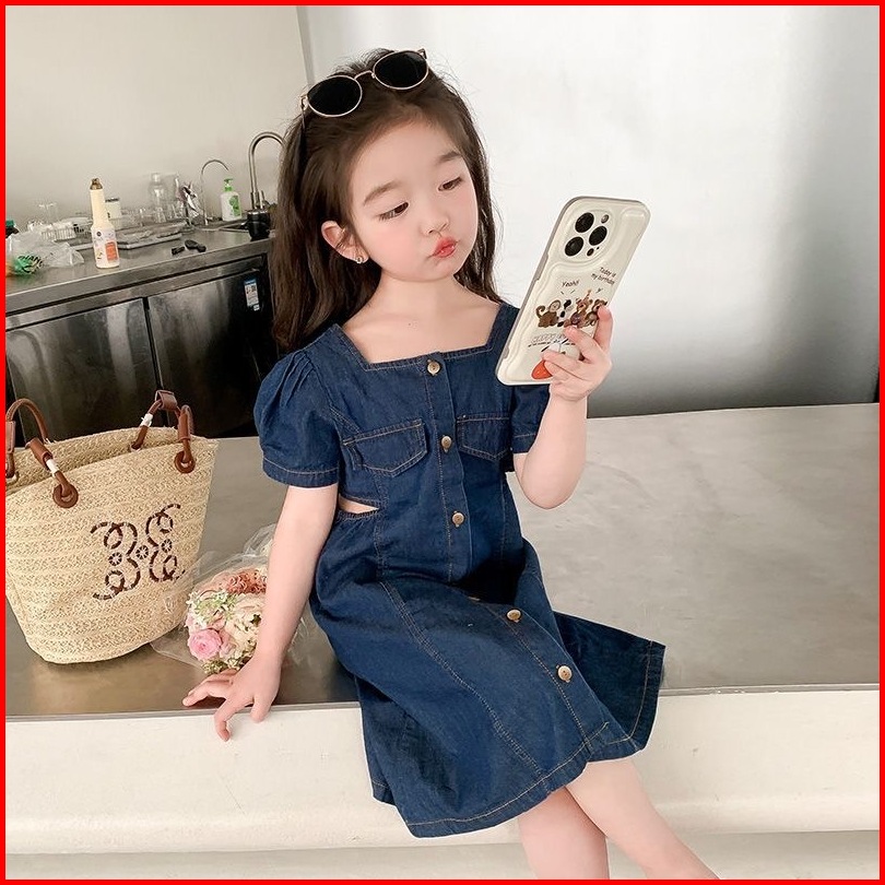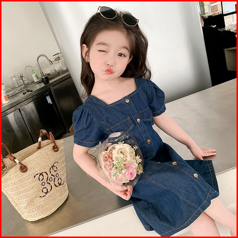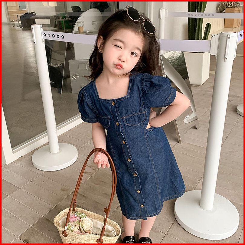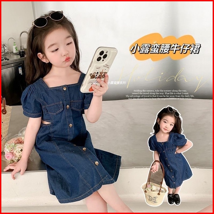 Princess Kesli 1-9 Tahun Dress Denim Jeans Koboi Baju Anak Perempuan Lengan Pendek Korean Style