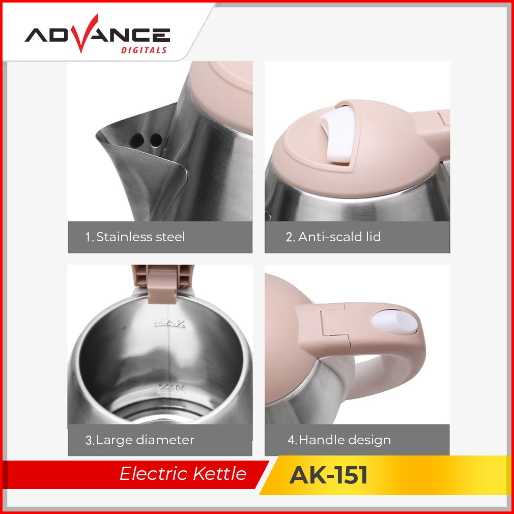 Advance Ak151 Teko Listrik Pemanas Air Kettle Listrik 1.5 Liter Stainless Low Watt