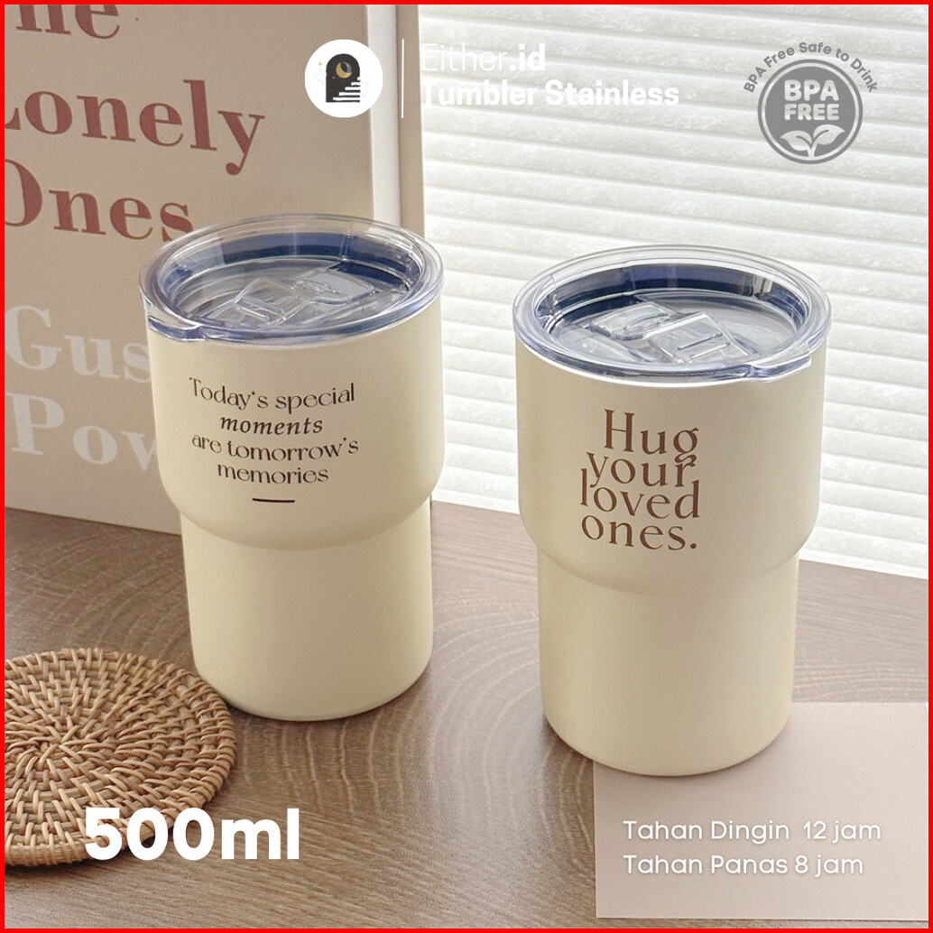 Either.id - Stainless Steel Cangkir Tumbler Kopi Cup Stainless Steel Portabel Botol Minum Aesthetic Termos Portable Tumb