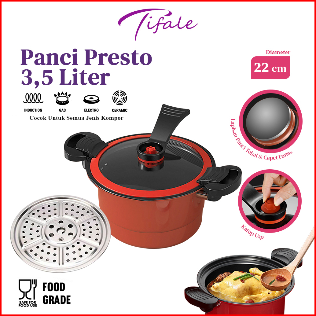 Tifale Panci Presto 3 5 Liter Wajan Presto Kokoh Coating Batu Medis High Quality