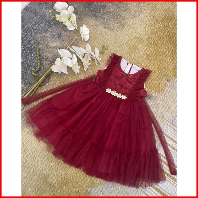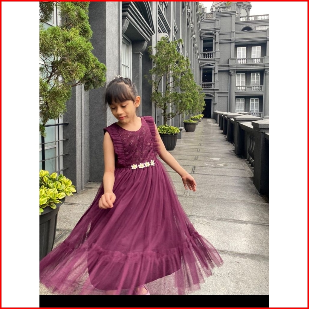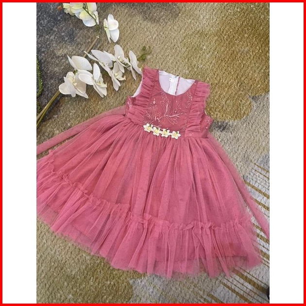 Baju Pesta Anak Mewah Dress Anak Cantik Gaun Anak Baju Ulang Tahun Kembang Putih