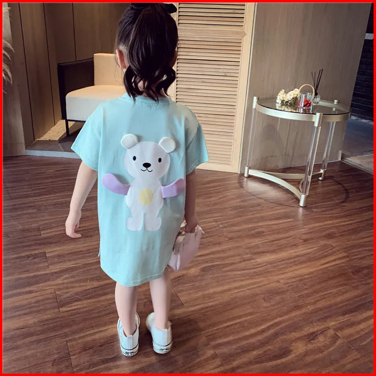 Princess Kesli 1-9 Tahun Dress Kaos Anak Prempuan Comfortable 2024 Hot Sales Gaun Kasual Lengan Pendek