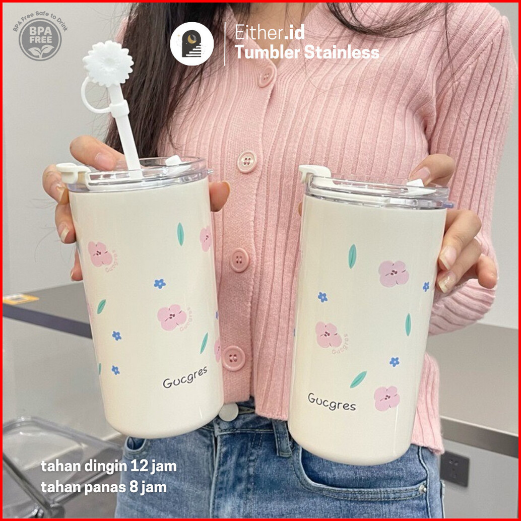 Either.id - Stainless Steel Cangkir Tumbler Kopi Cup Stainless Steel Portabel Botol Minum Aesthetic Termos Portable Tumb
