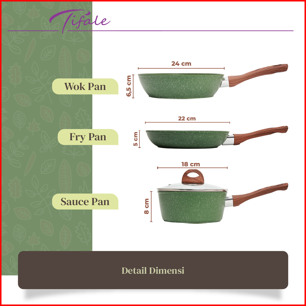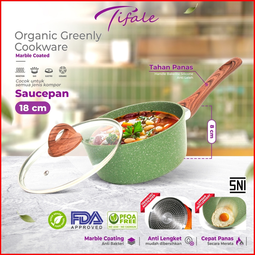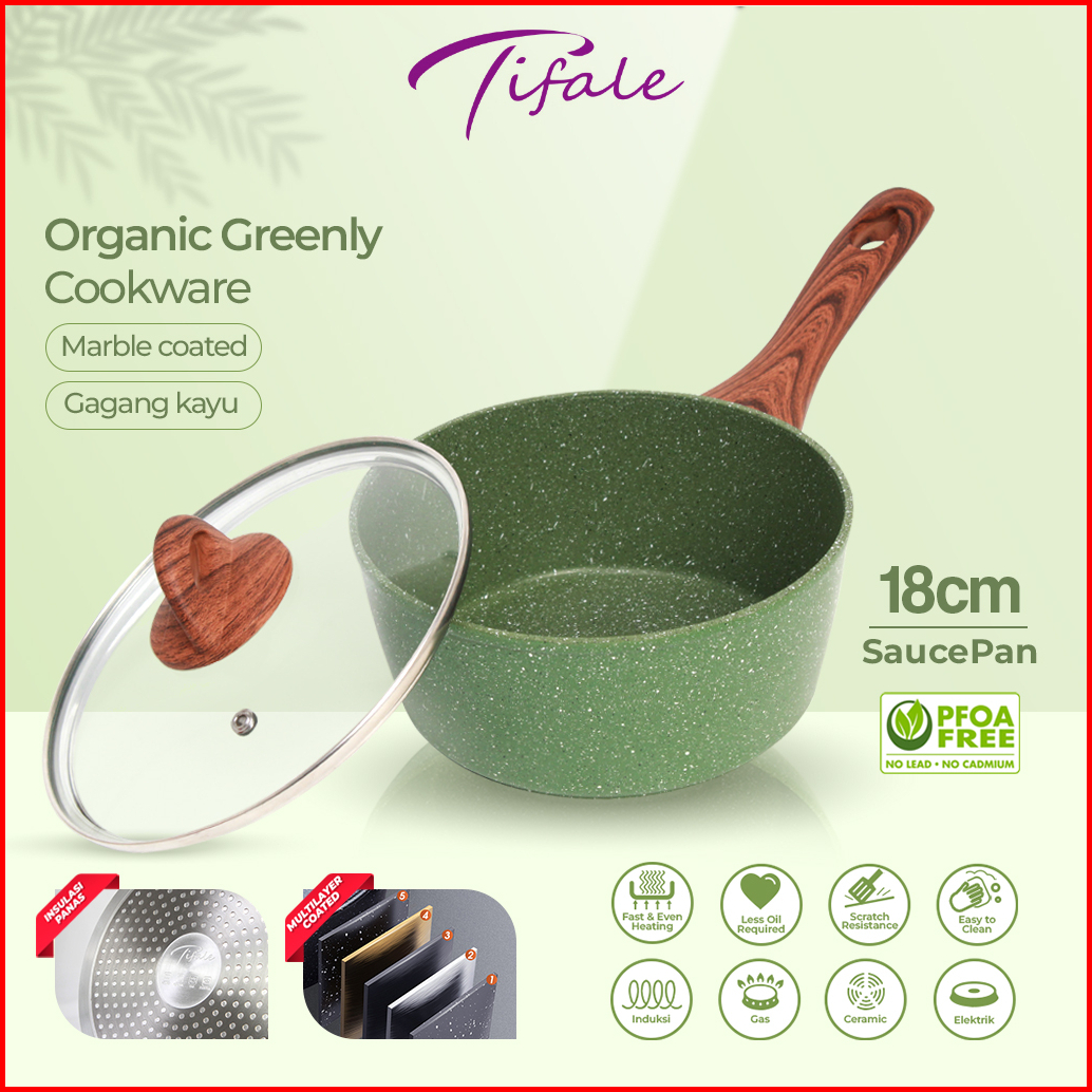 Tifale Organic Greenly Cookware Saucepan Marble Coated Anti Lengket Handle Bakelite Silicone Anti Leleh Avocado Pan