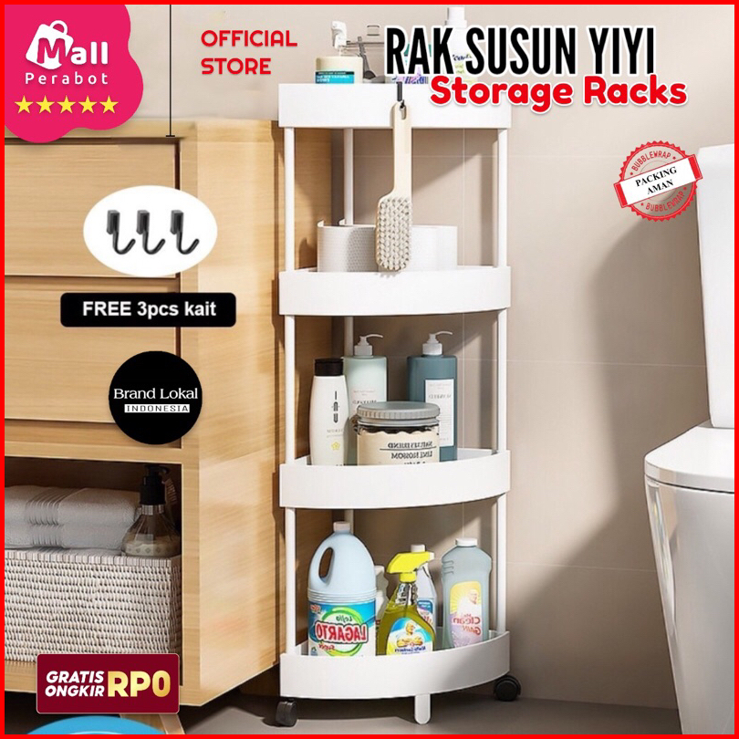 Mall Perabot Rak Siku Serbaguna Susun Ruang Tamu Tidur Dapur Roda Toilet Kamar Mand Rak Tingkat Roda