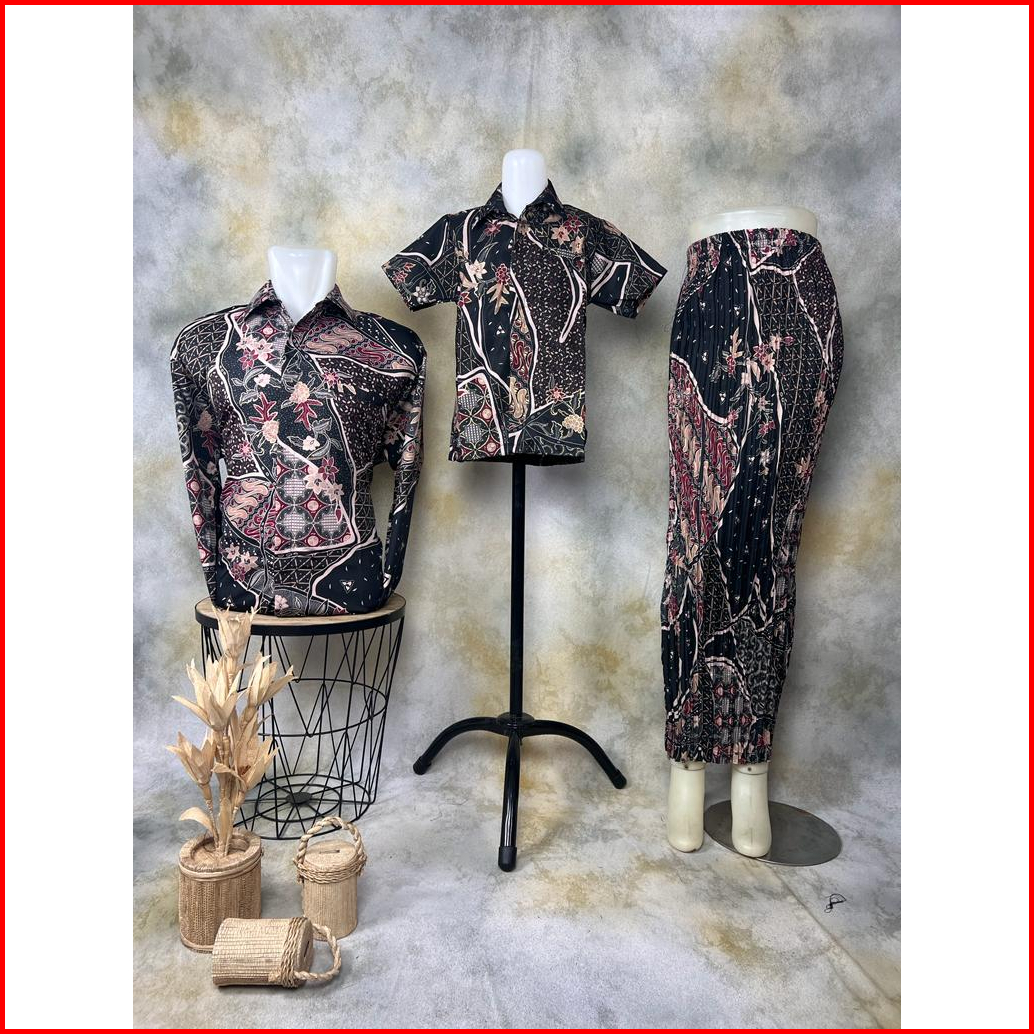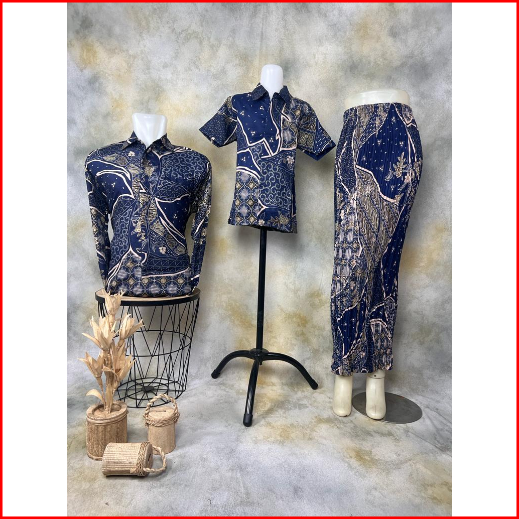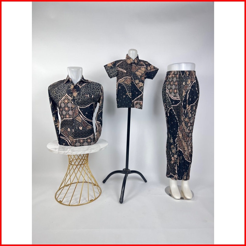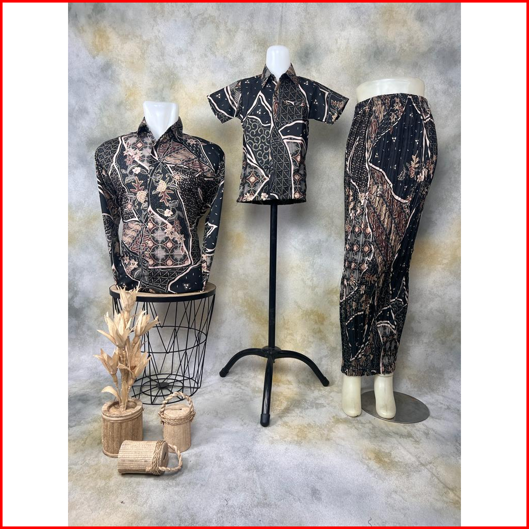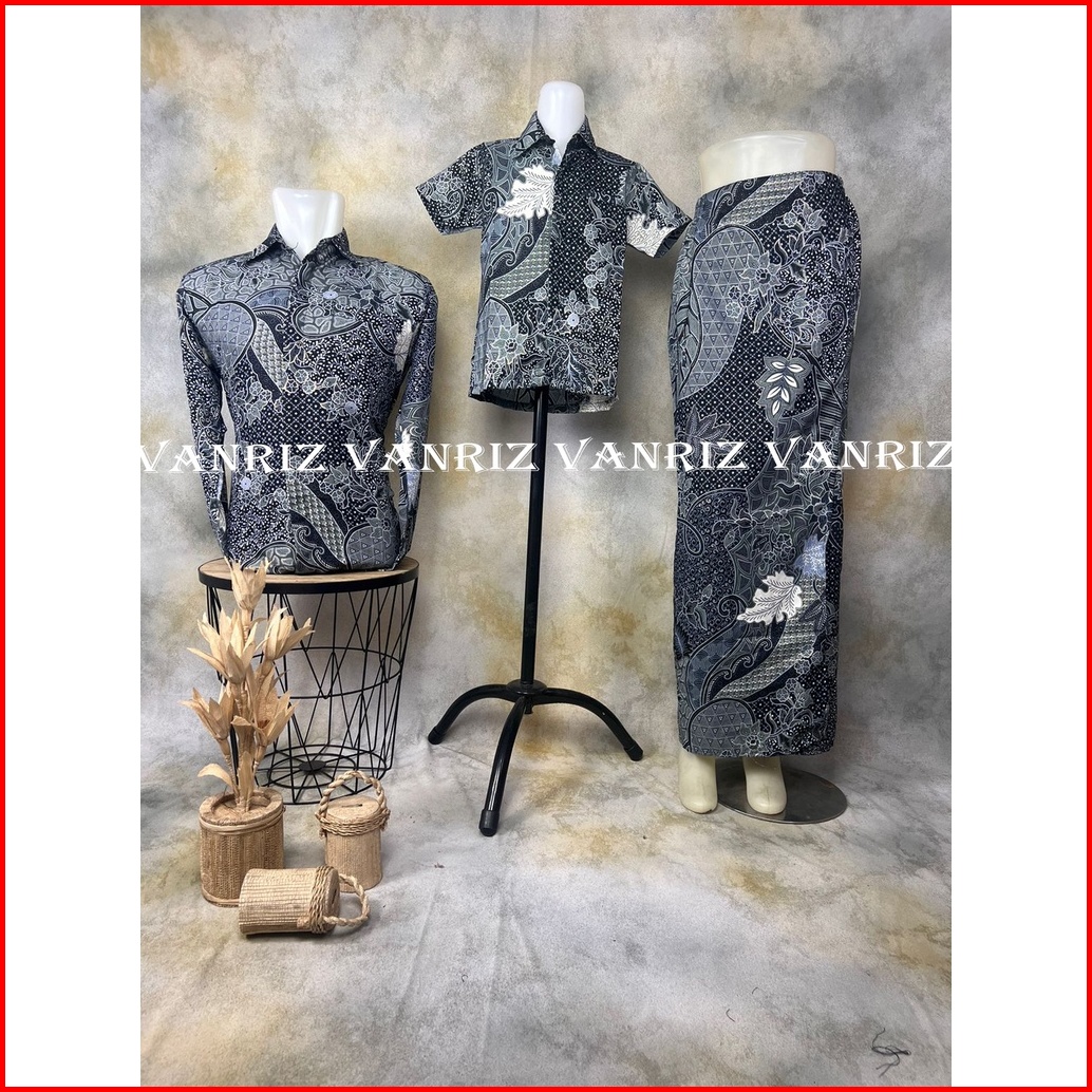 Vanriz Kebaya - Kemeja Batik Pria Lengan Panjang Couple Anak Dan Rok Plisket