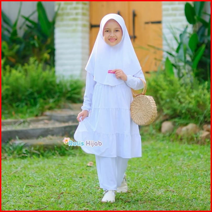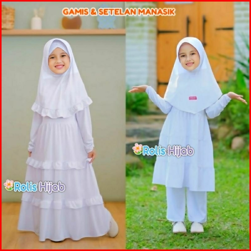 Rolis Hijab Gamis Putih Anak Perempuan Gamis Anak Putih Manasik