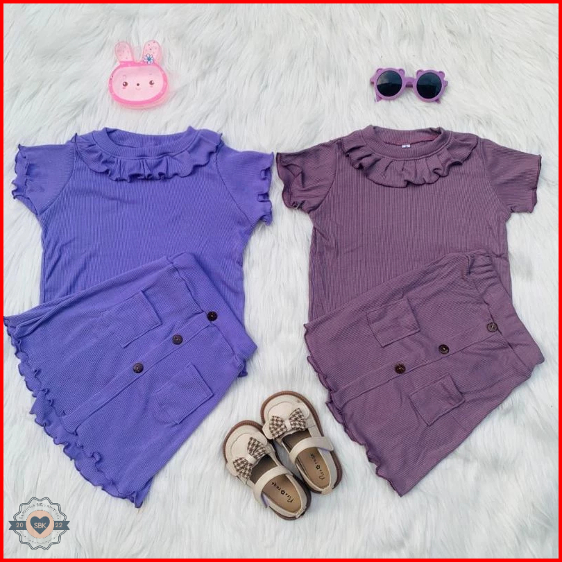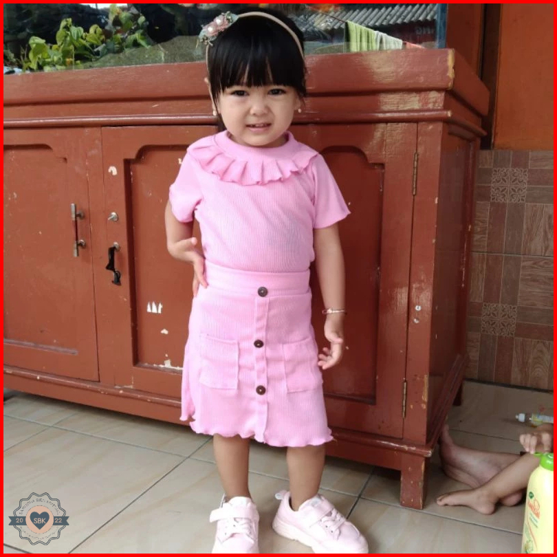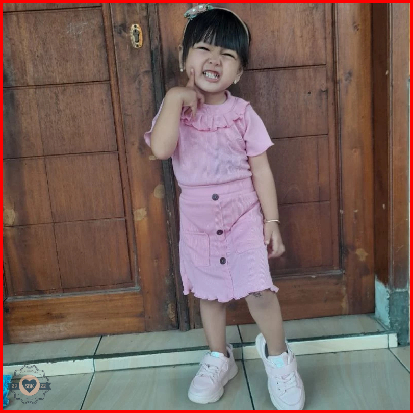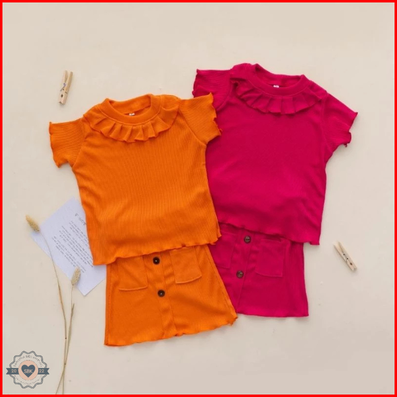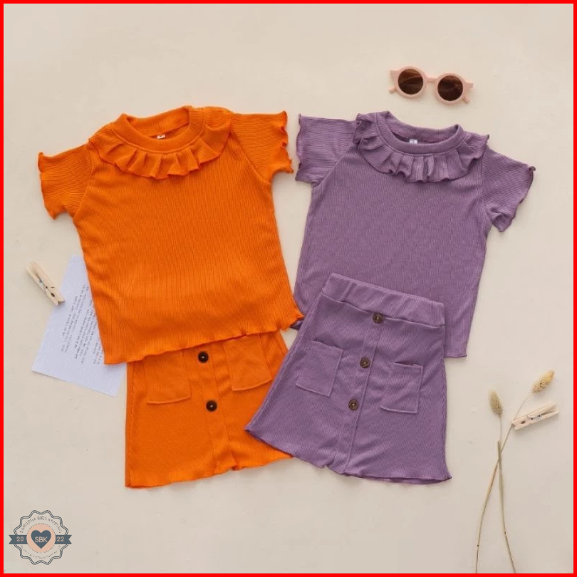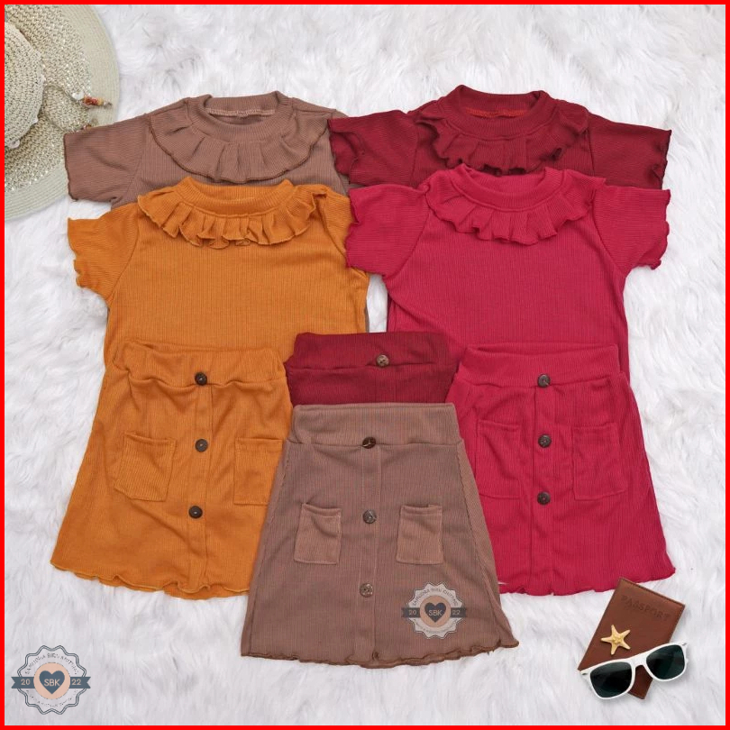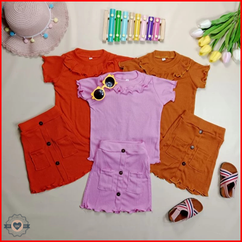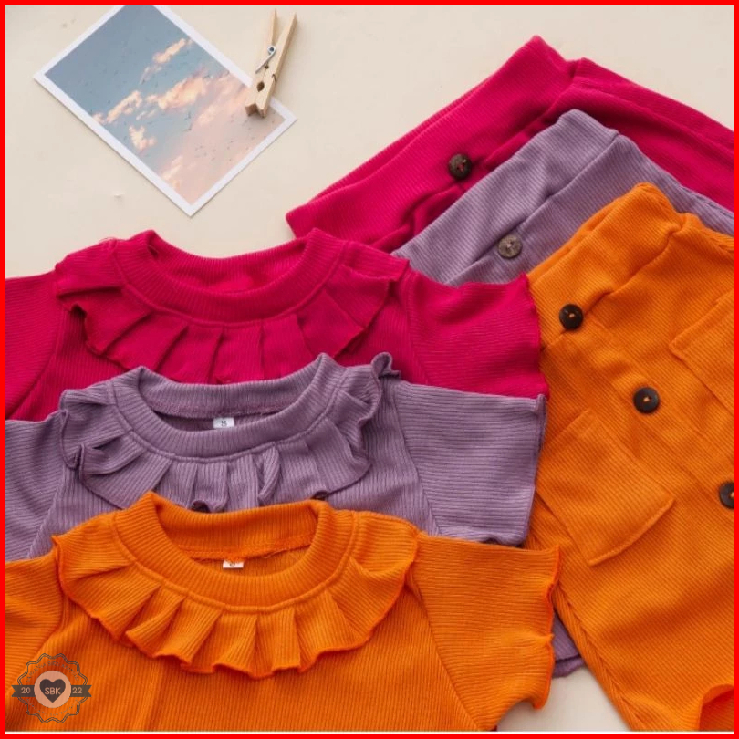 Baju Setelan Rok Anak Perempuan Rempel Raisa Ruffle Knit Tee Rib Usia 1-5 Tahun Rib Knit