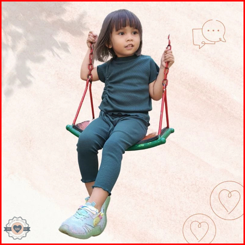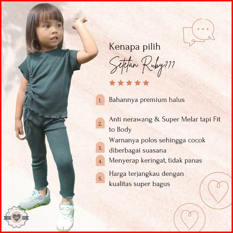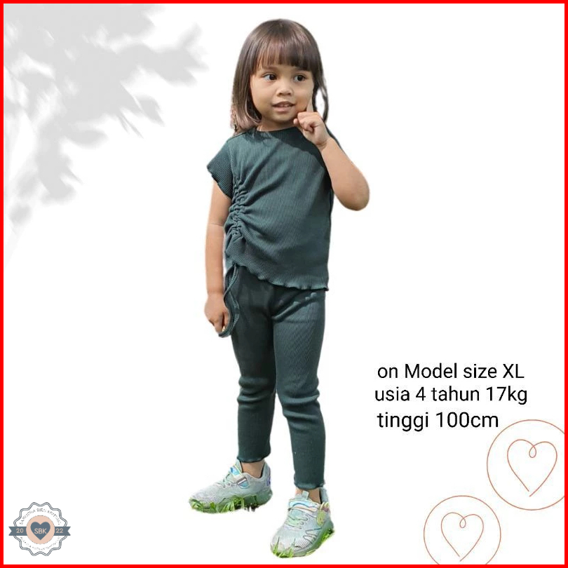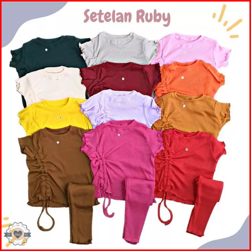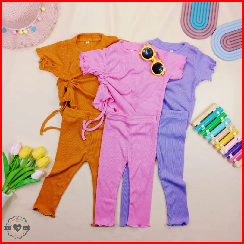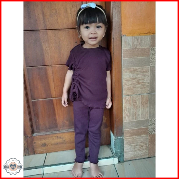 Baju Setelan Anak Perempuan Kerut Ruffle Knit Tee Rib 1-5 Tahun Bahan Rib Knit