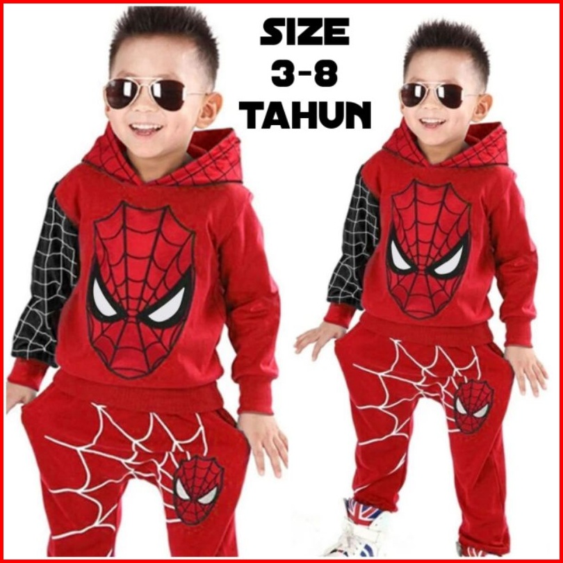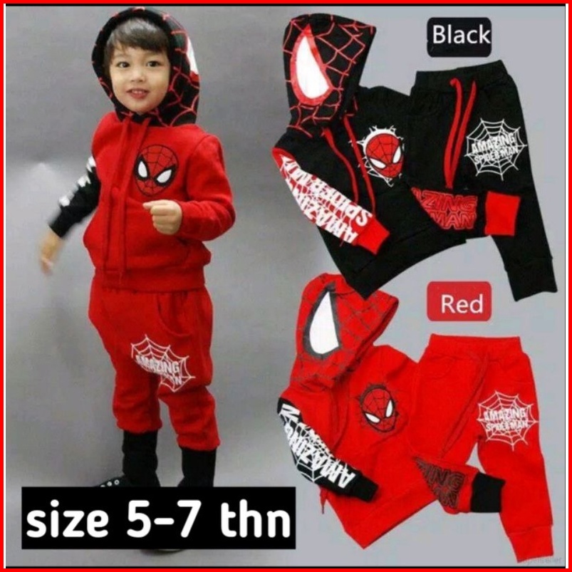 Crf Setelan 5-8 Tahun Spider Infinity Superkid Anak Hoodie Model Terbaru