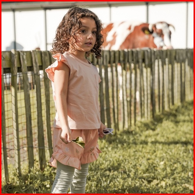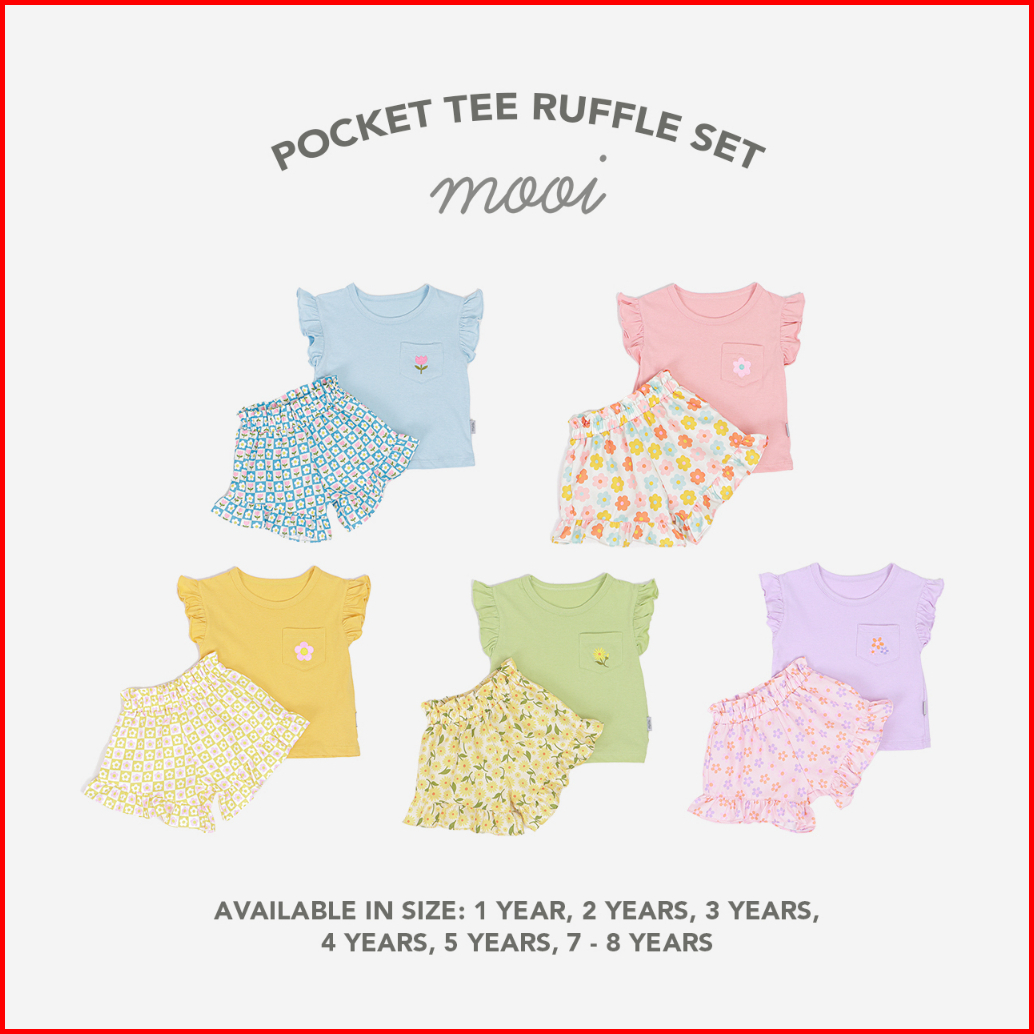 Mooi Setelan Anak Perempuan Ruffle Pocket Tee