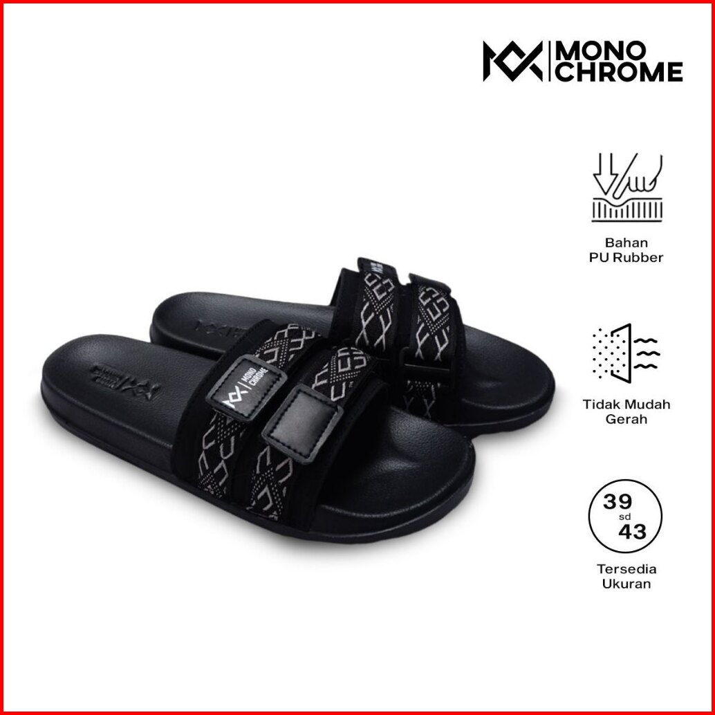 Monochrome Webber Sandal Pria Size 39-43 Anti Slip Bahan Karet Hitam