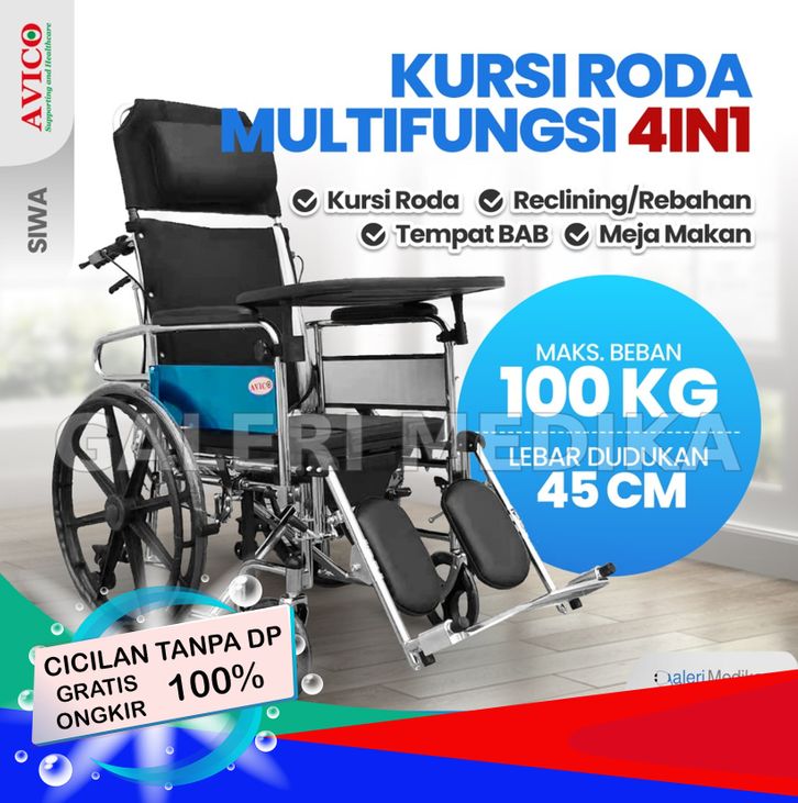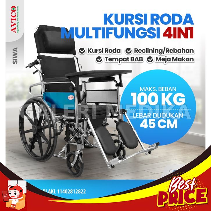Kursi Roda 4in1 Avico Siwa - Kursi Roda Multifungsi (Makan, Berbaring, Selonjoran, BAB, Kursi Roda)