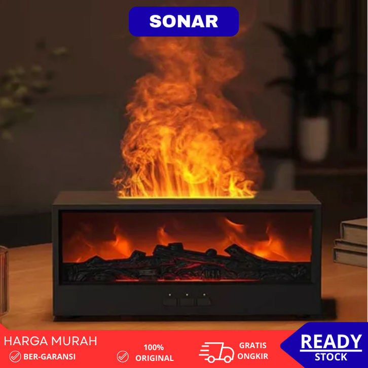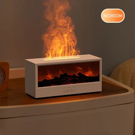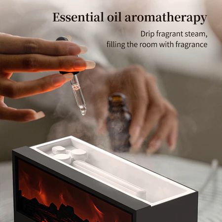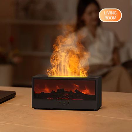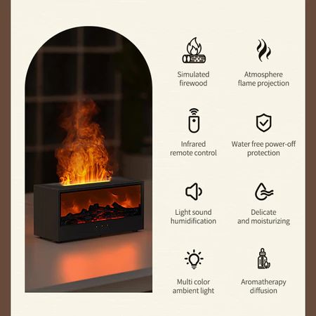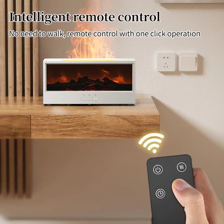Humidifier Udara Diffuser Aromaterapi Proyeksi Api Kayu - Pelembap Udara Remote Control, Timer, 7 Warna LED