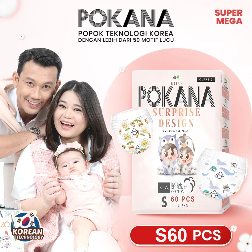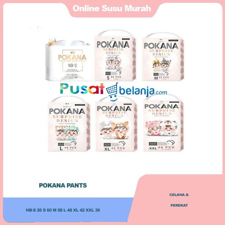 POKANA PANTS MEGA PACK S60 M58 L48 XL42 XXL36 TAPE NB-S26 Popok sekali pakai