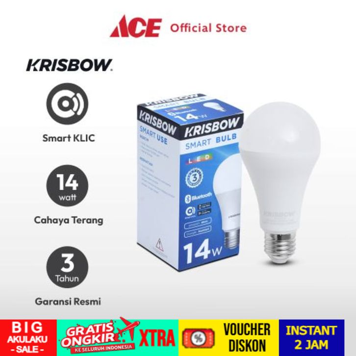 TERMURAH Ace Krisbow Bohlam Led Smart Bluetooth 14 Watt Rgbcw Bulb Lampu Cahaya Multicolor Indoor Outdoor Light Led