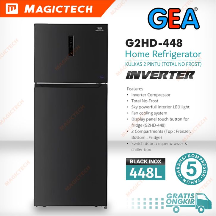 KULKAS GEA 2 PINTU G2HD-448 JUMBO 448L INVERTER BLACK INOX - G2HD448
