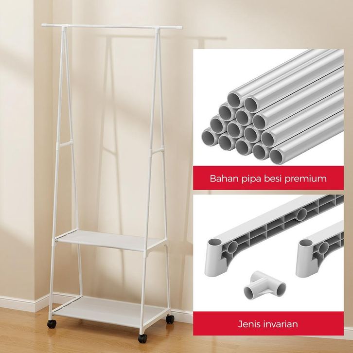 TERMURAH Homes Stand Hanger/Rak Mantel Berdiri/Rak Baju Gantung Triangle Dengan Roda/Tempat Hanger Baju Serbaguna/Rak