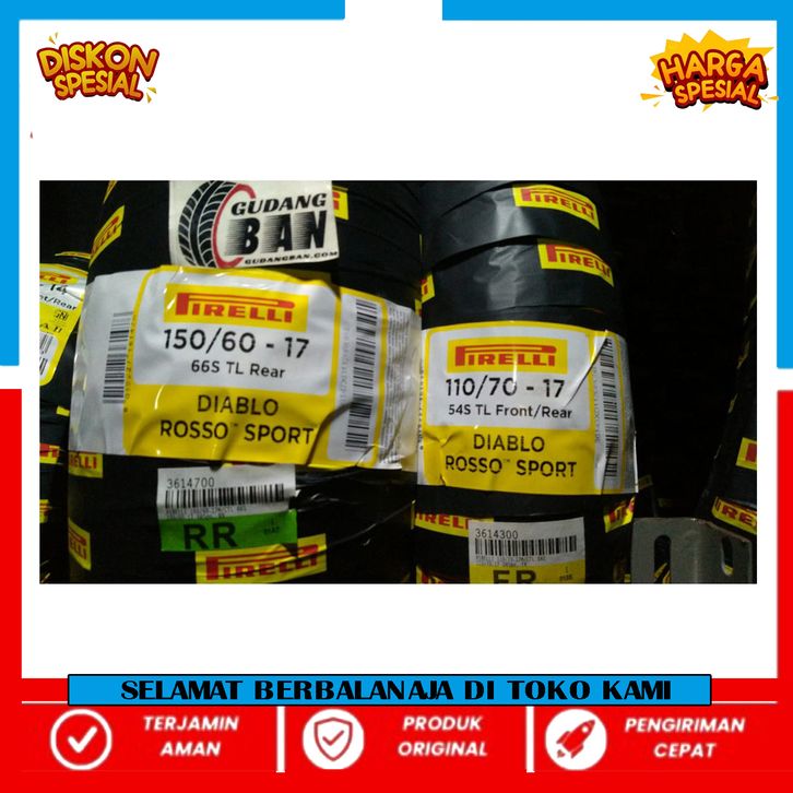 BAN NO.1 PAKET PIRELLI DIABLO ROSSO SPORT UK 110 / 70 - 17 DAN 150 / 60 - 17 TUBELESS FREE PENTIL