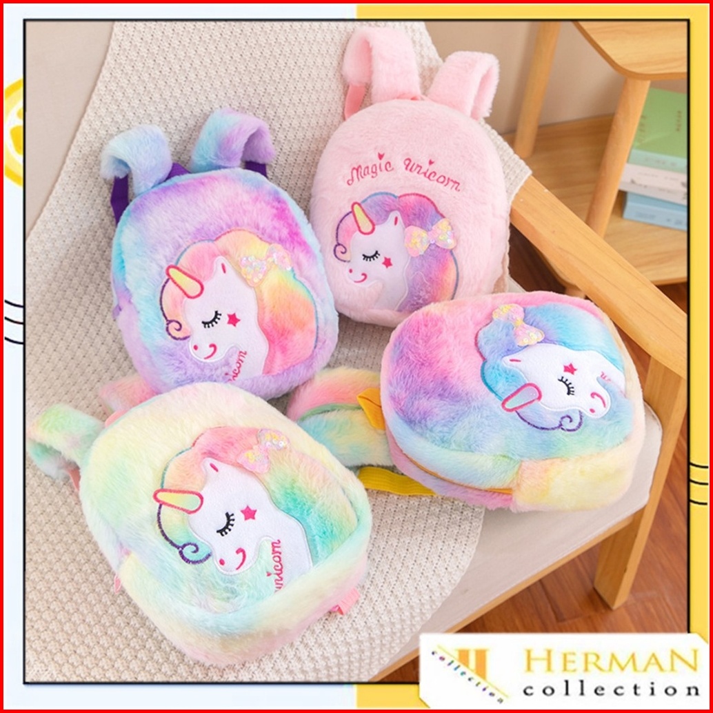 Hc Tas Ransel Anak Karakter Unicorn Tas Sekolah Anak Paud Tk Model Bulu Halus Ransel Unicorn Berkualitas T
